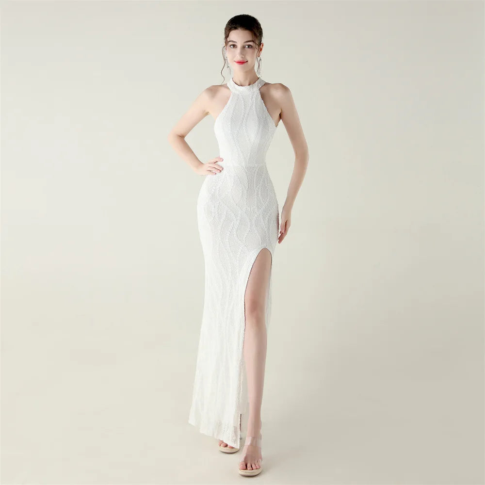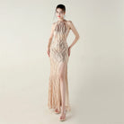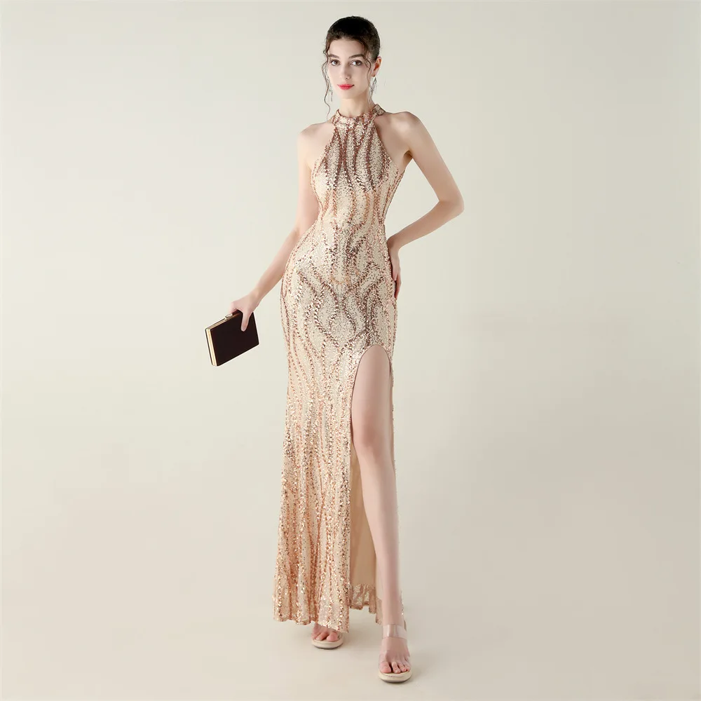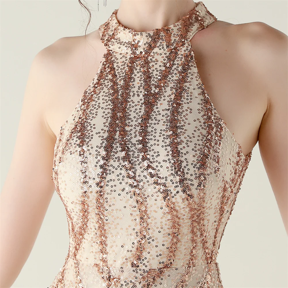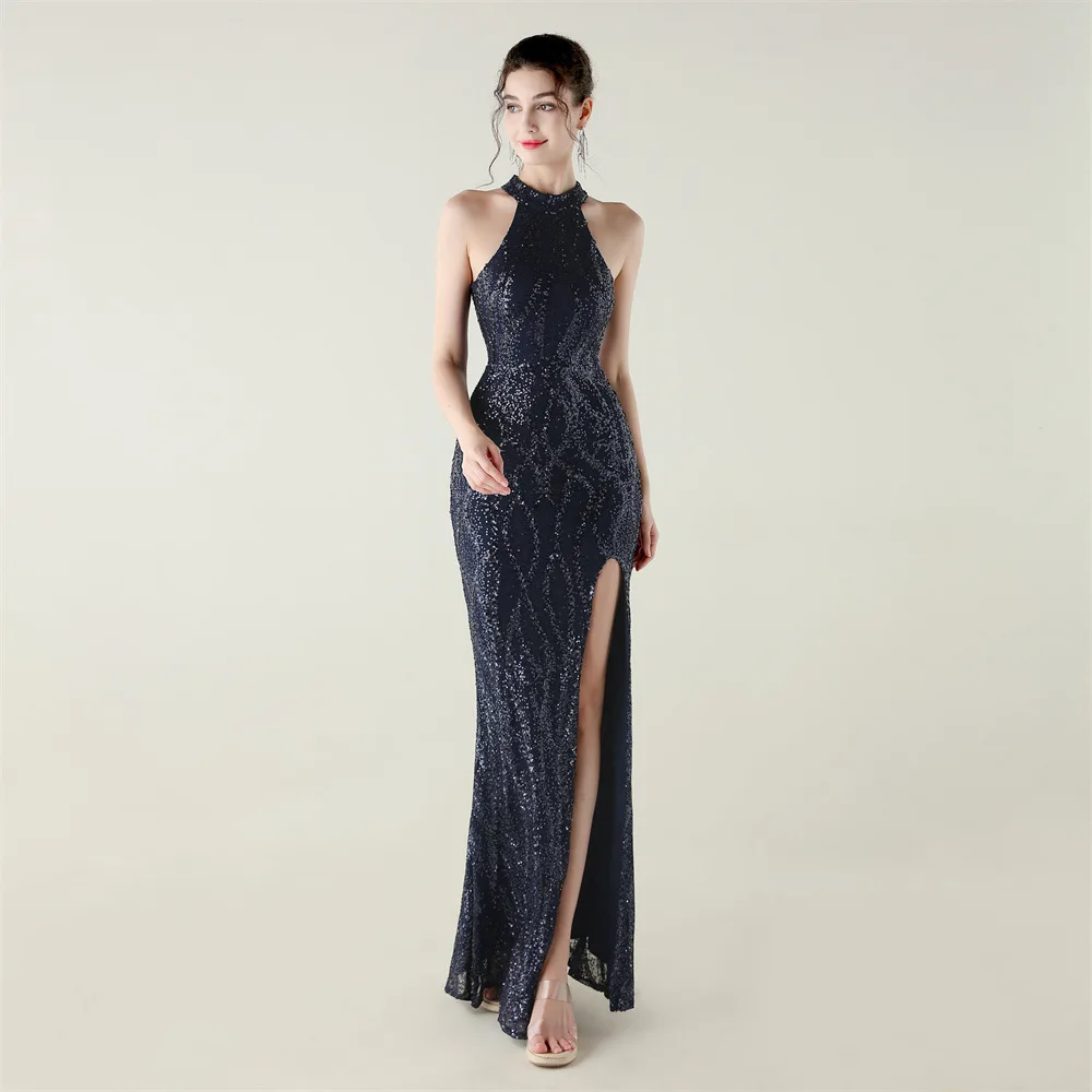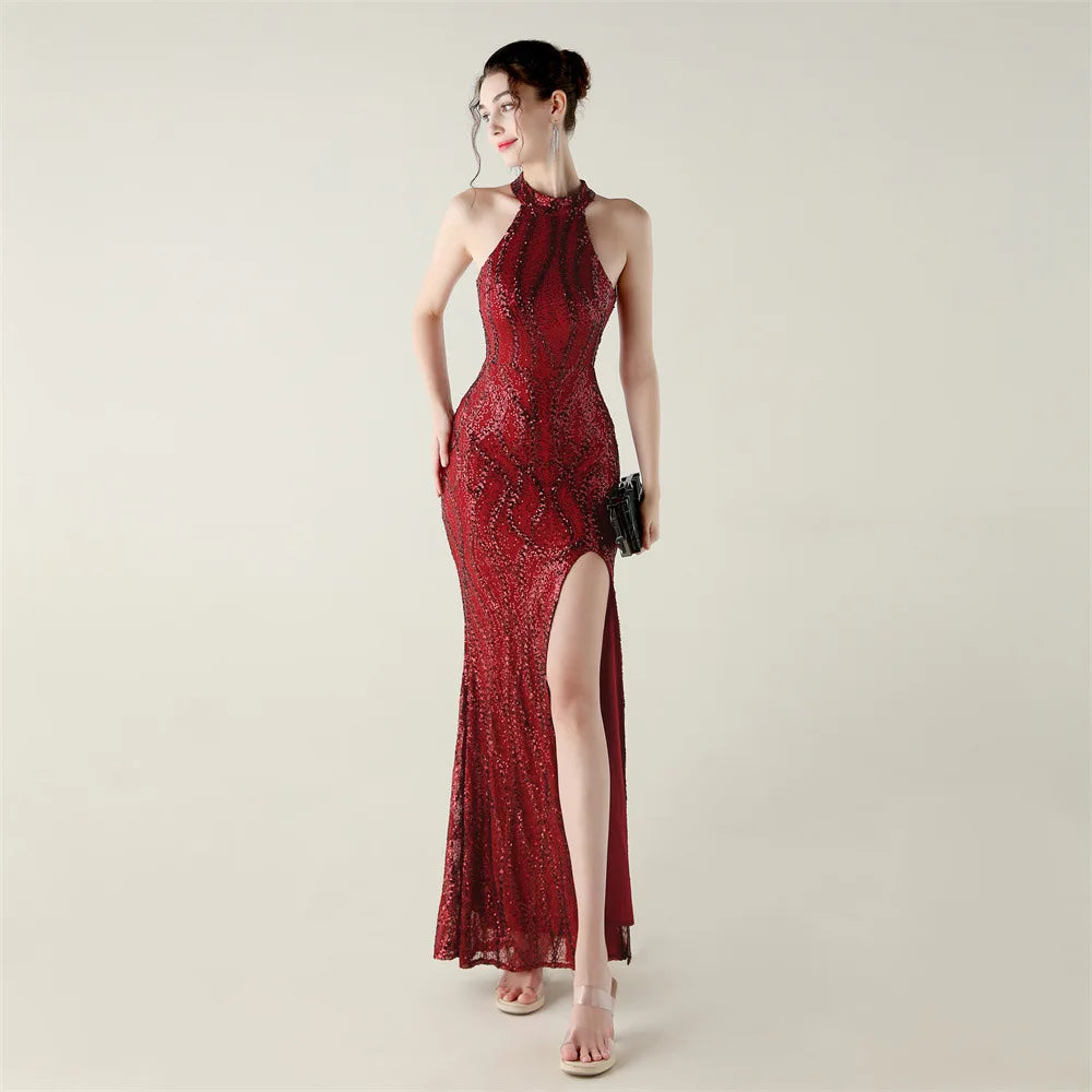 Trend4us Halter Sequin Open-Back Maxi Evening Gown