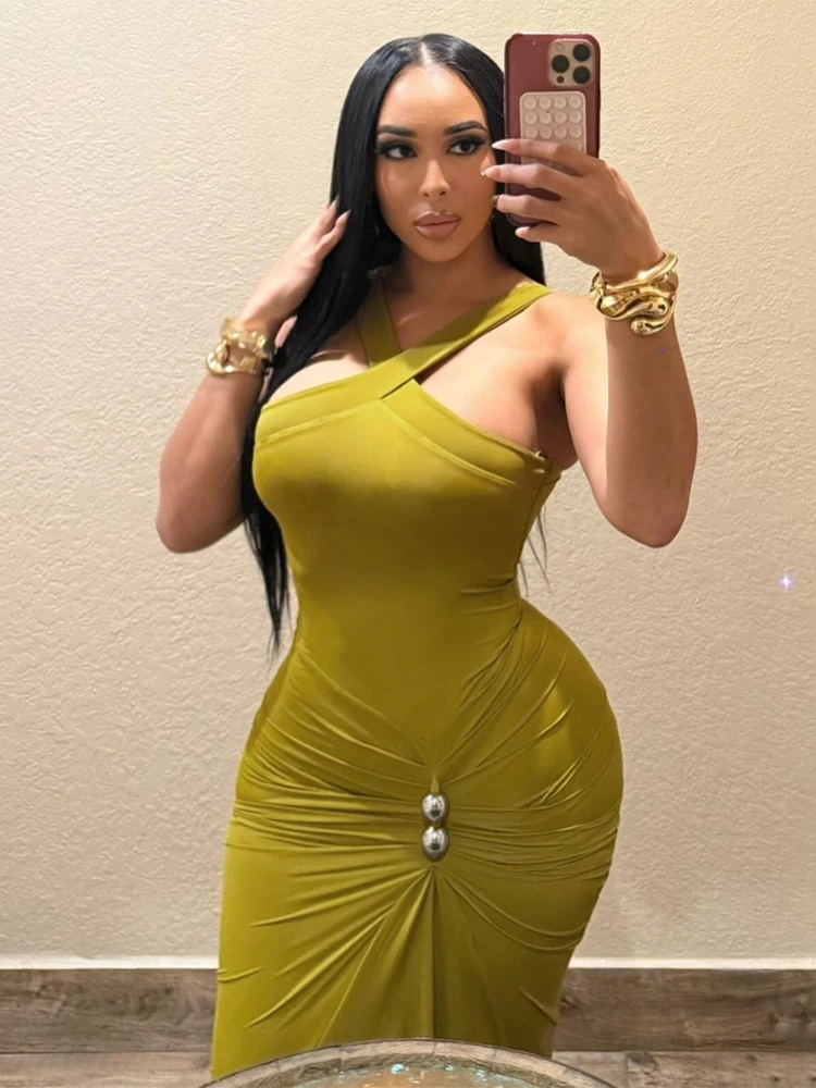 Elevate your evening wardrobe with this sophisticated maxi dress, designed for those who appreciate refined elegance. The cross-halter neckline creates a striking focal point while the strategically placed ruching flatters the silhouette and adds dimensional interest. Crafted from premium materials, this floor-length piece transitions seamlessly from formal events to upscale dinners. The minimalist yet bold design ensures timeless appeal season after season. A luxury essential for the discerning dresser seeking understated glamour with architectural detail.