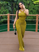 Trend4us Luxe Cross-Halter Ruched Maxi Dress