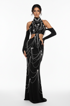 Trend4us Luxe Crystal Chain Cutout Backless Gown
