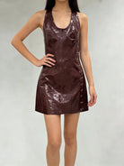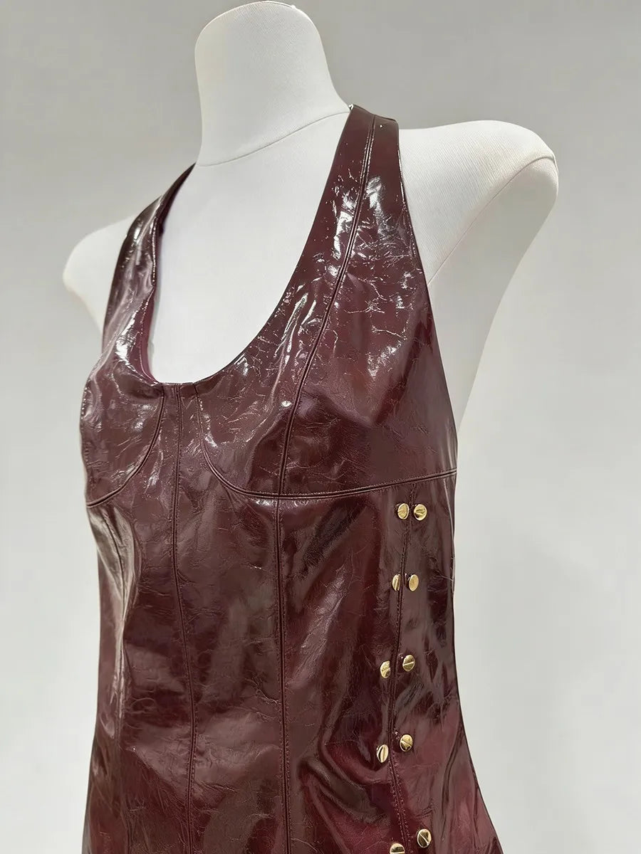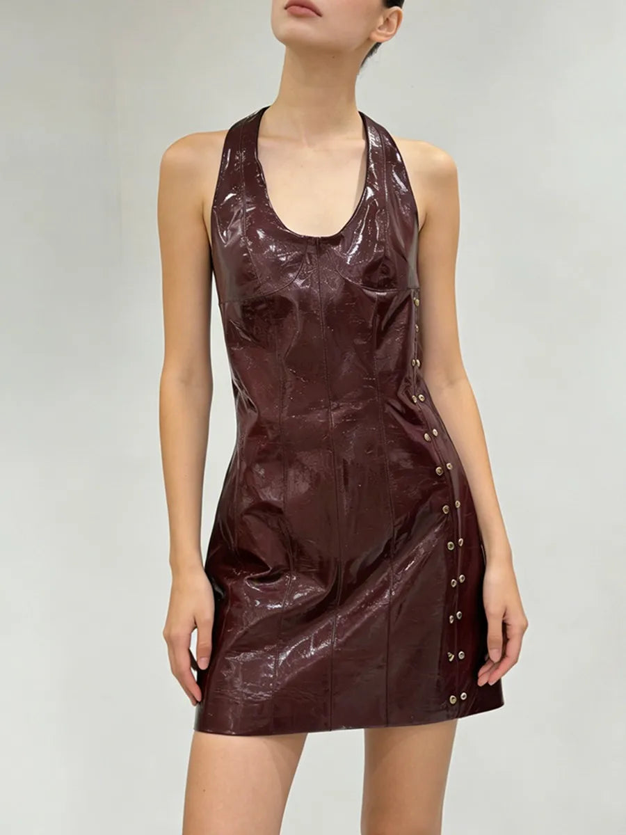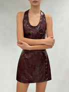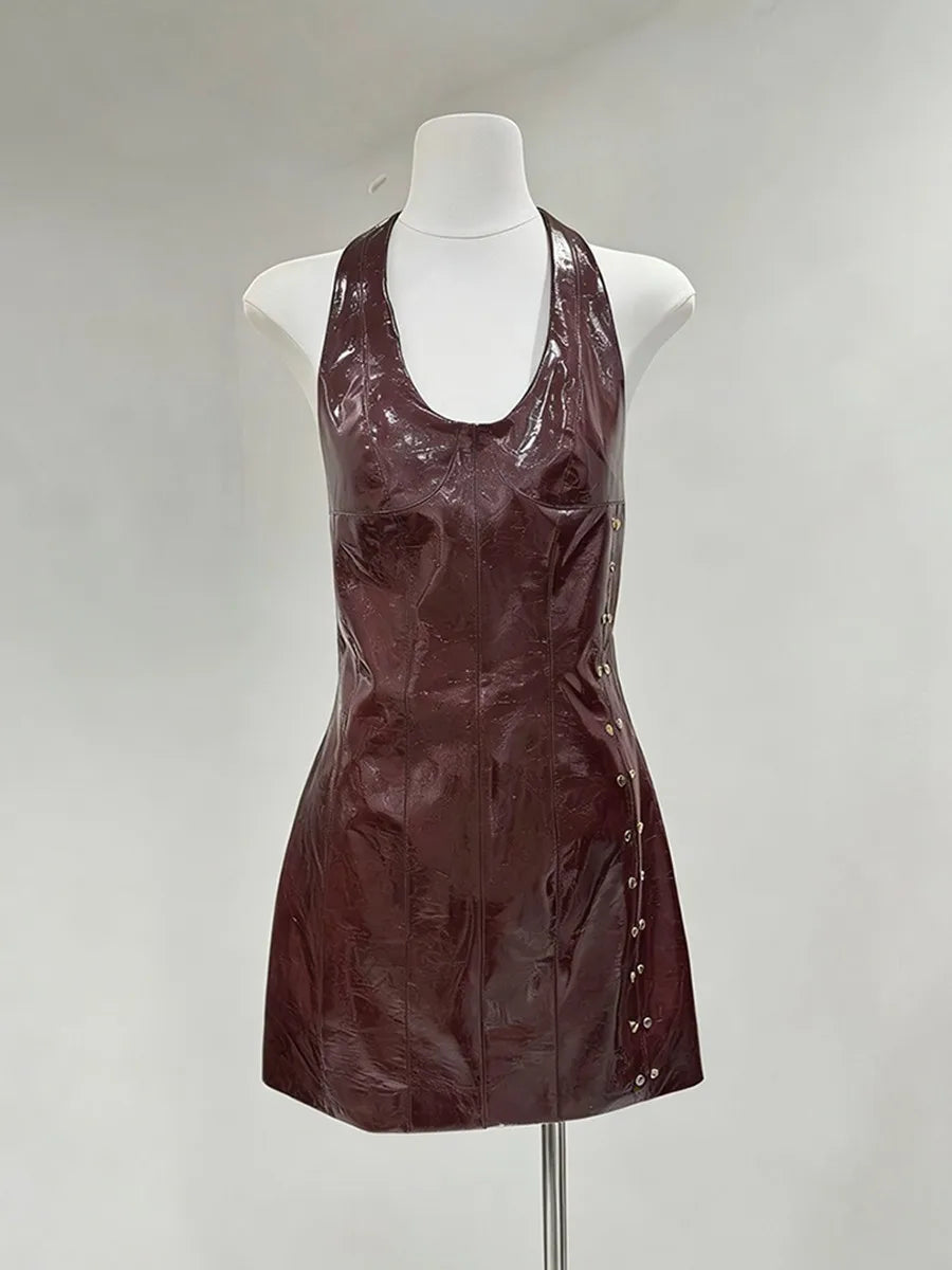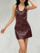 Trend4us Luxe Faux Leather Halter Backless Mini Dress