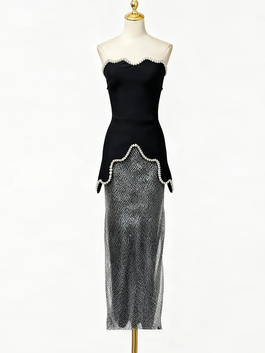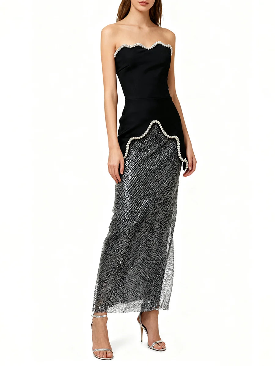 Trend4us Elegant Strapless Cutout Maxi Evening Dress