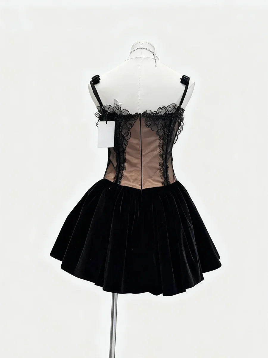 Trend4us Luxe Velvet Lace Corset Mini Dress