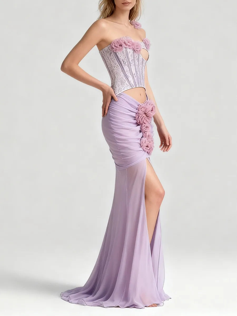 Trend4us Luxe 3D Floral Corset Cutout Evening Gown