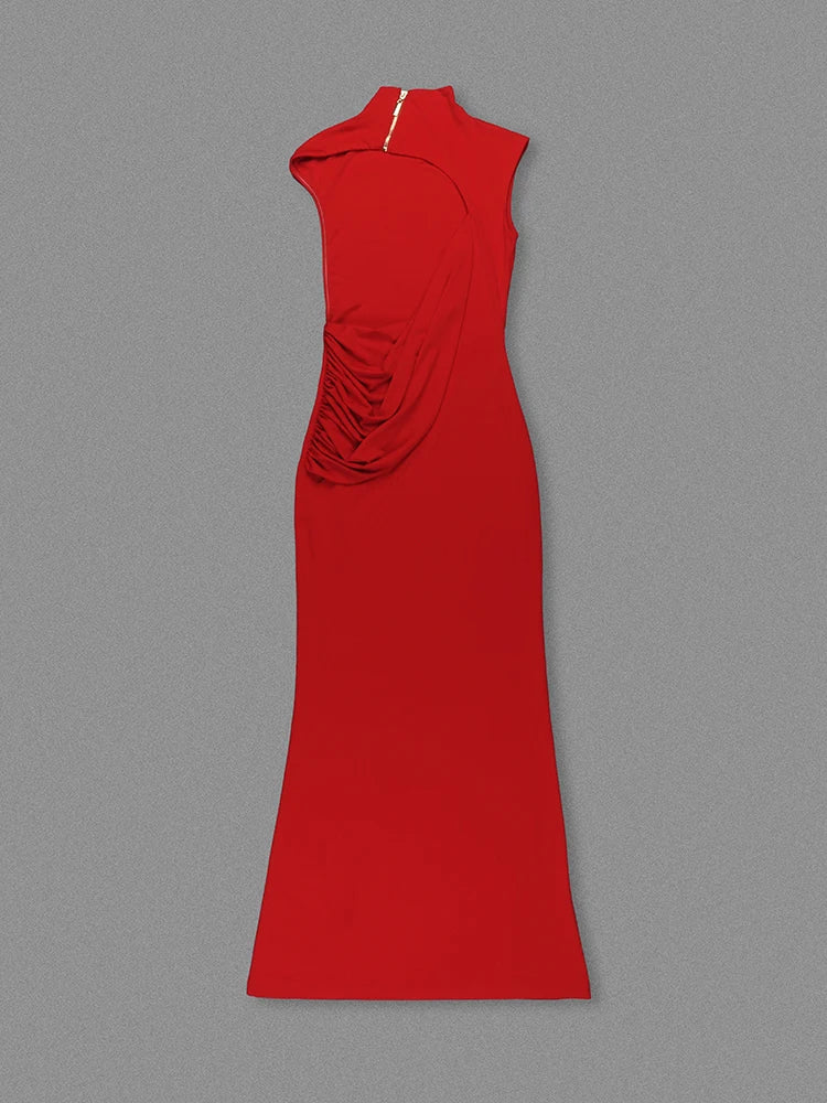 Trend4us Elegant Backless Draped High-Neck Maxi Dress