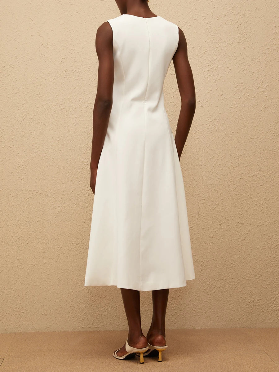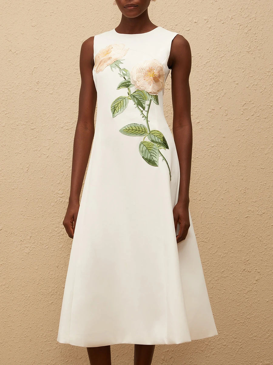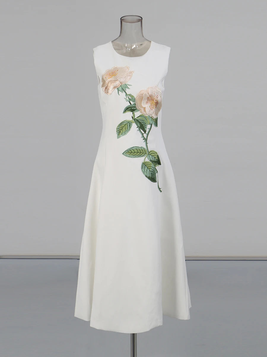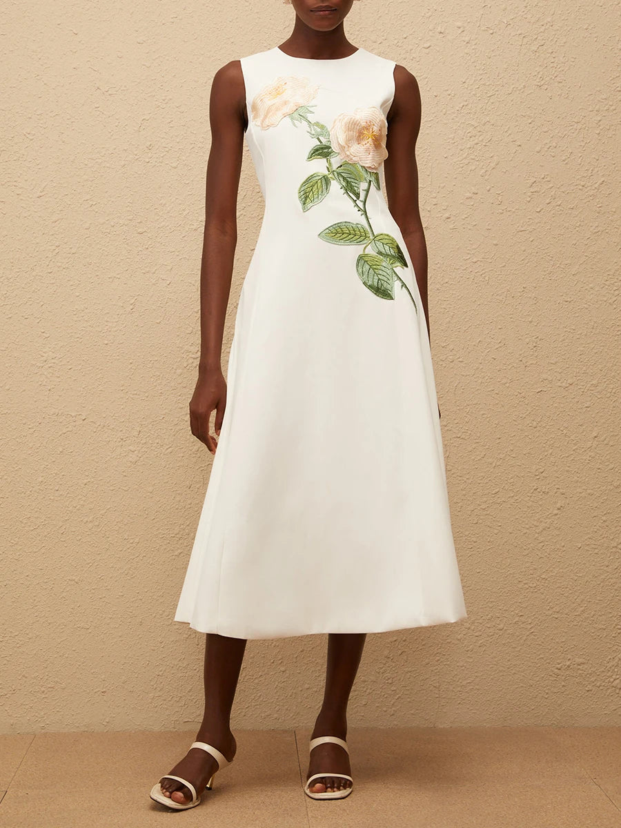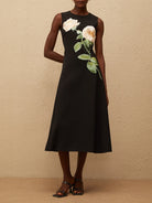 Trend4us Elegant Floral Appliqué Sleeveless Midi Dress