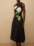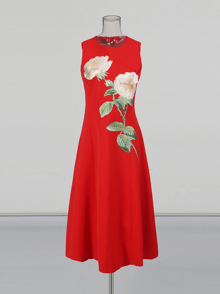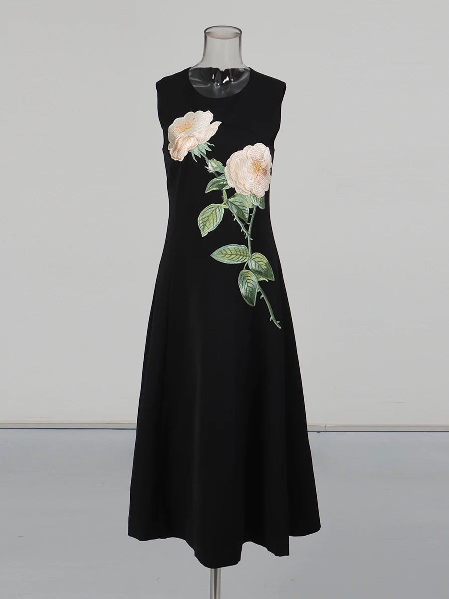 Step into timeless sophistication with the Trend4us Elegant Floral Appliqué Sleeveless Midi Dress. Crafted from a smooth, structured fabric, this dress showcases intricate 3D floral appliqué detailing that cascades gracefully across the bodice, adding a romantic, artistic touch. The sleeveless design and flattering A-line silhouette offer a graceful flow with every step, while the midi length strikes the perfect balance between elegance and ease. Ideal for weddings, garden parties, or special evening occasions, this dress embodies refined femininity with modern charm.