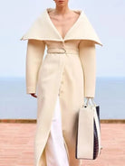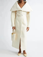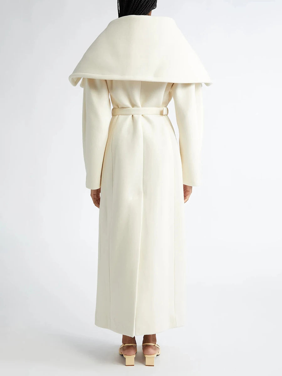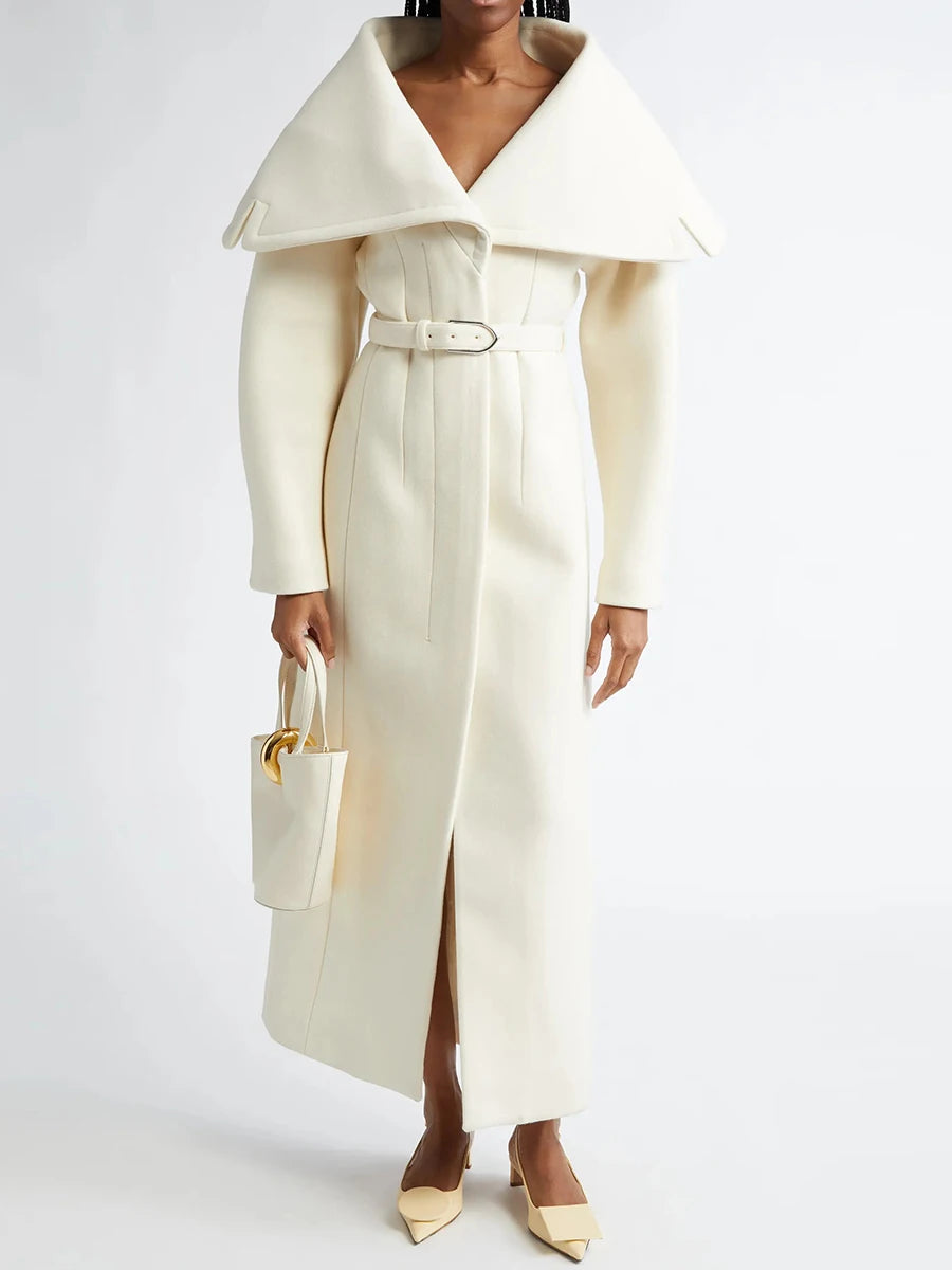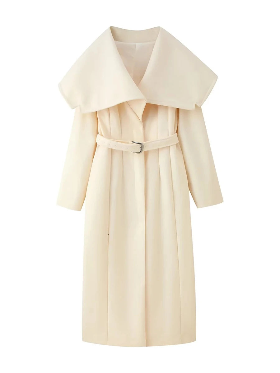 Trend4us Elegant Oversized Collar Belted Maxi Coat