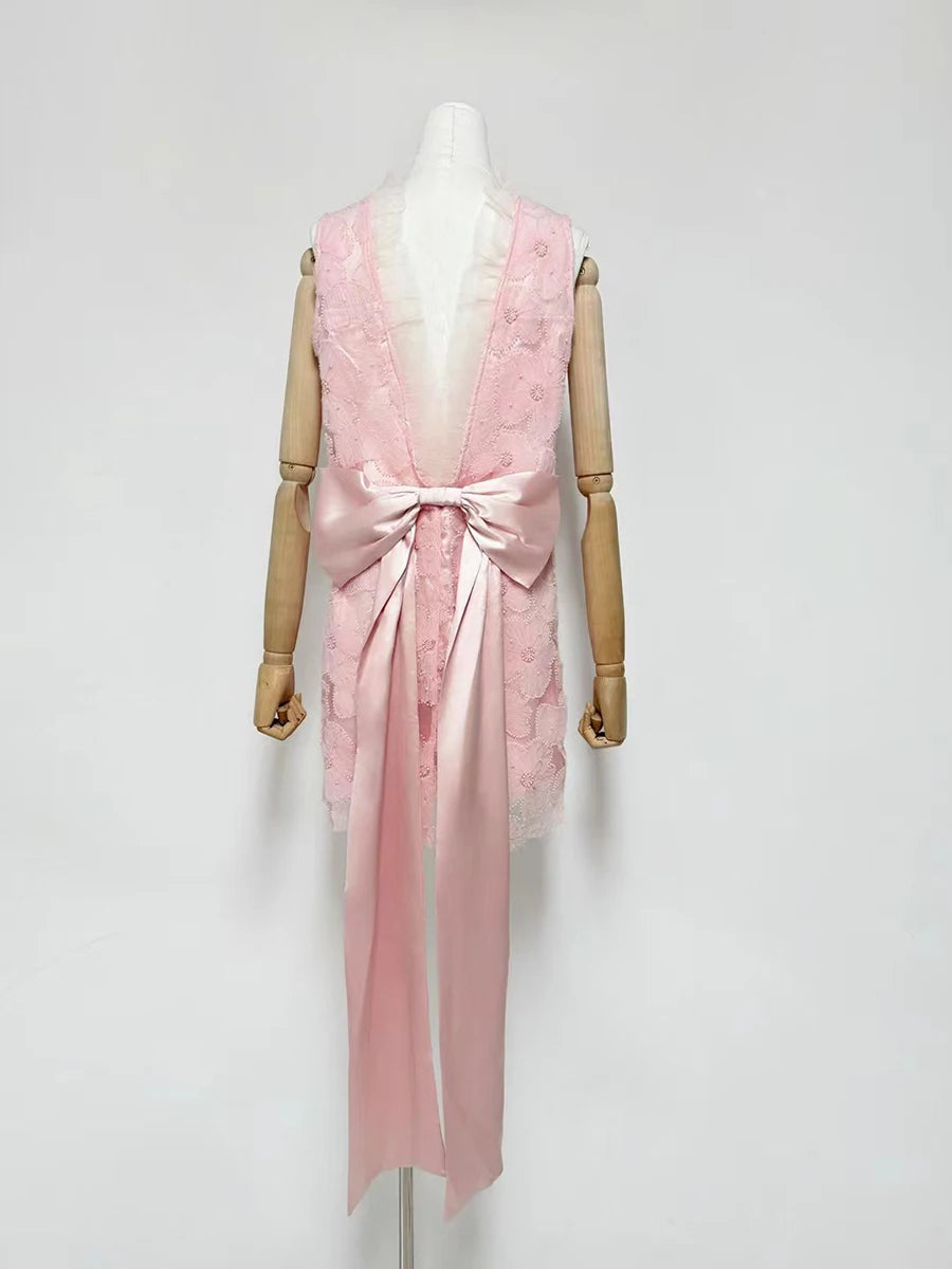 Step into elegance with the Trend4us Embroidered 3D Floral Bow-Back Mini Dress. Featuring intricate floral embroidery, a sheer neckline, and a dramatic satin bow with flowing tails at the back, this dress delivers charm from every angle—perfect for bridal showers, garden parties, and special occasions.