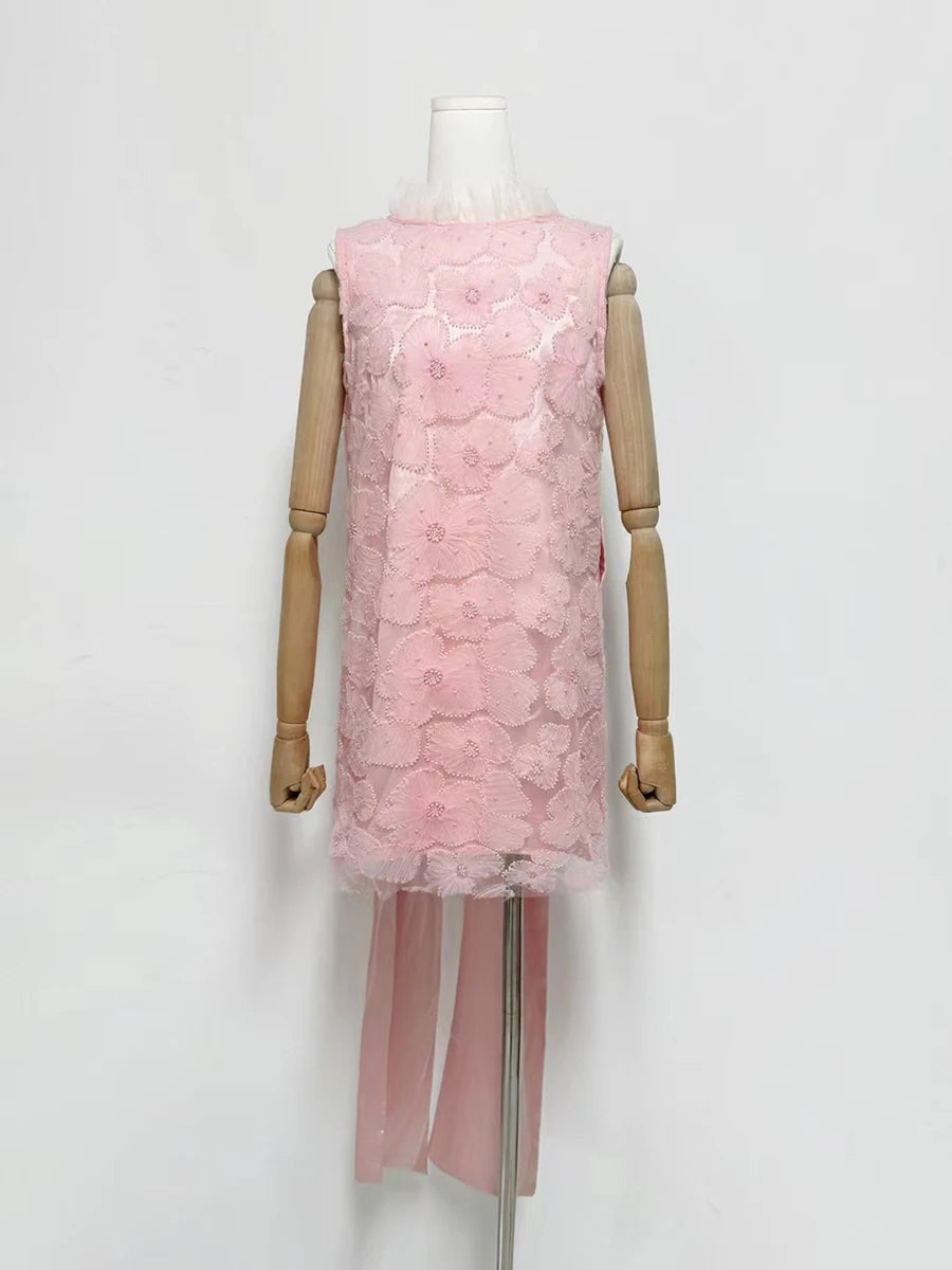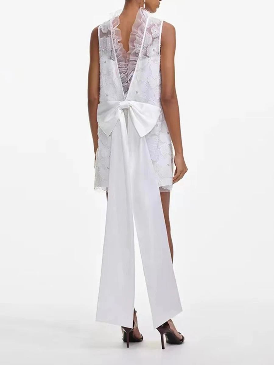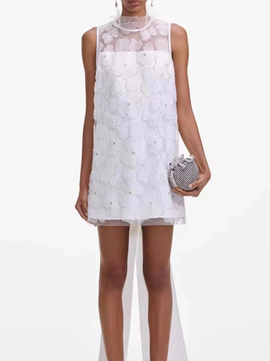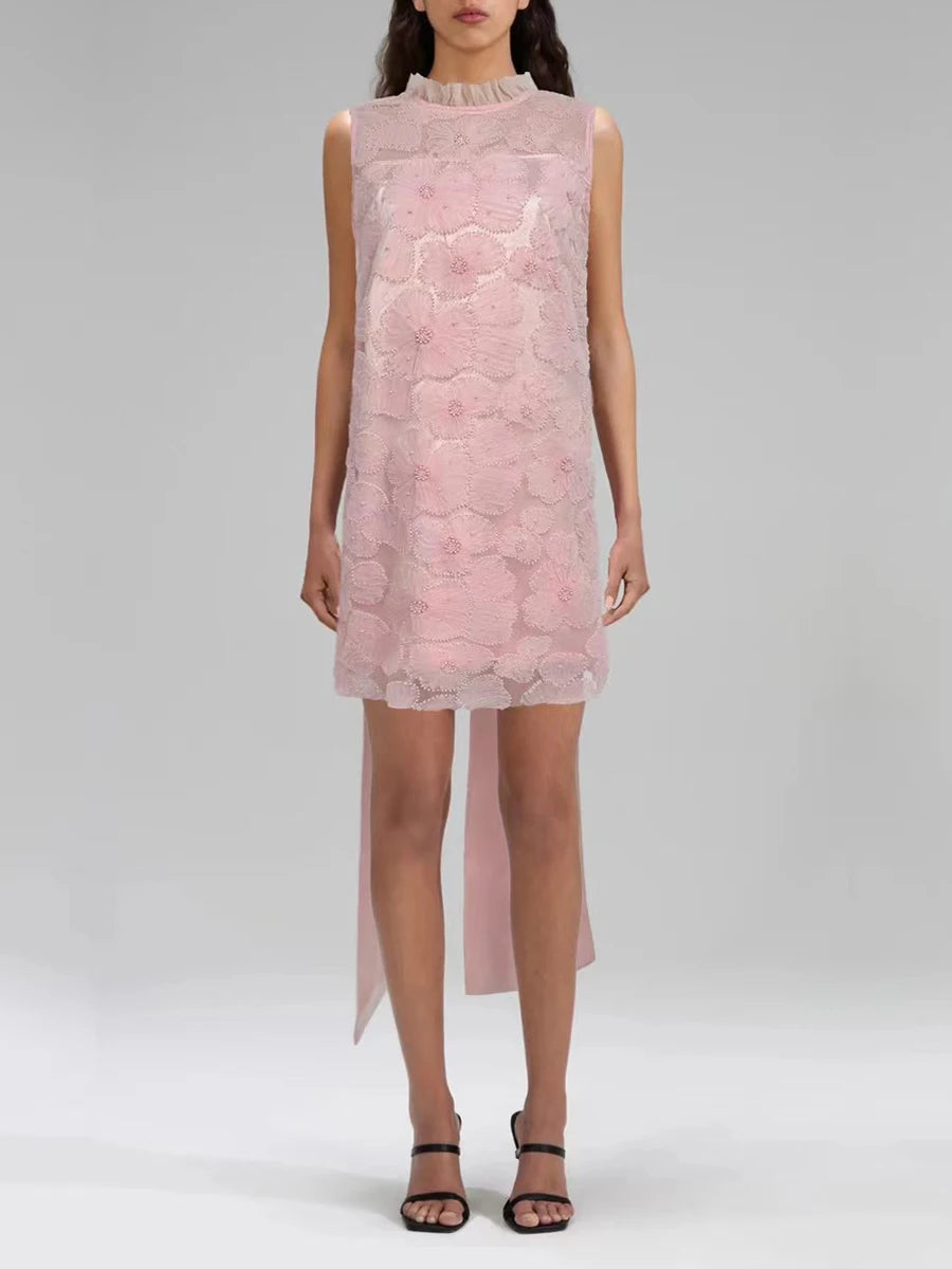 Trend4us Embroidered 3D Floral Bow-Back Mini Dress