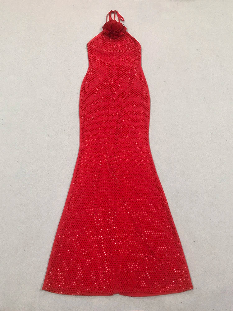 Trend4us Glam Rosette Sparkle Halter Gown