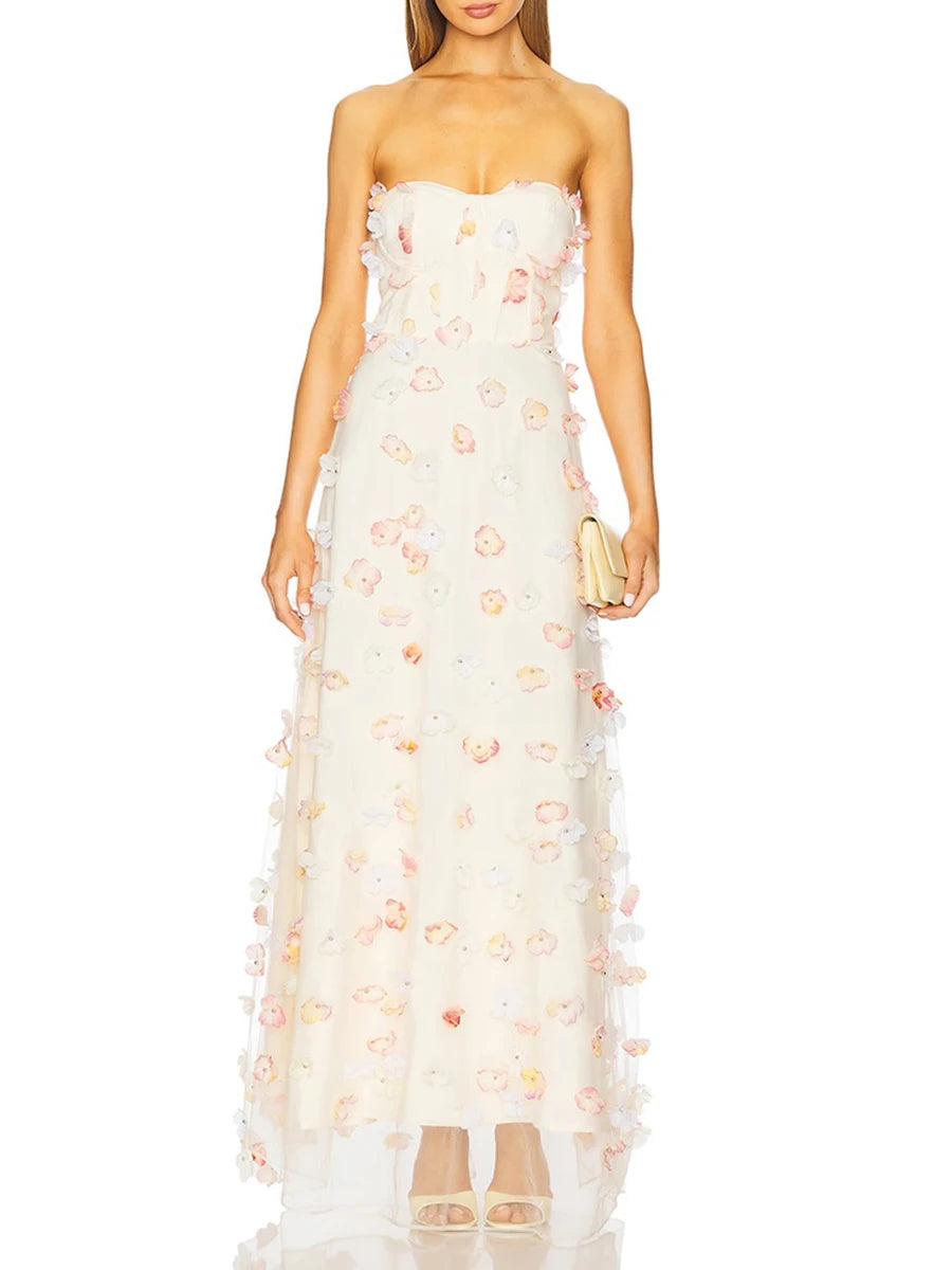 Trend4us Luxe 3D Floral Appliqué Strapless Gown