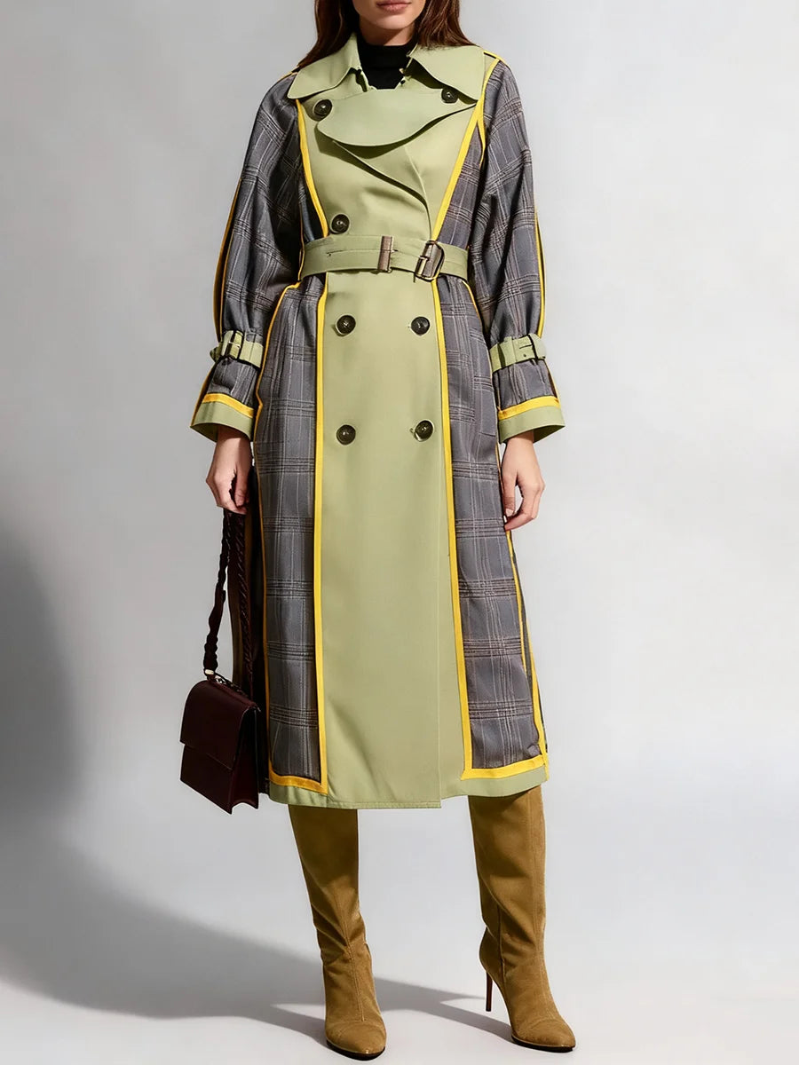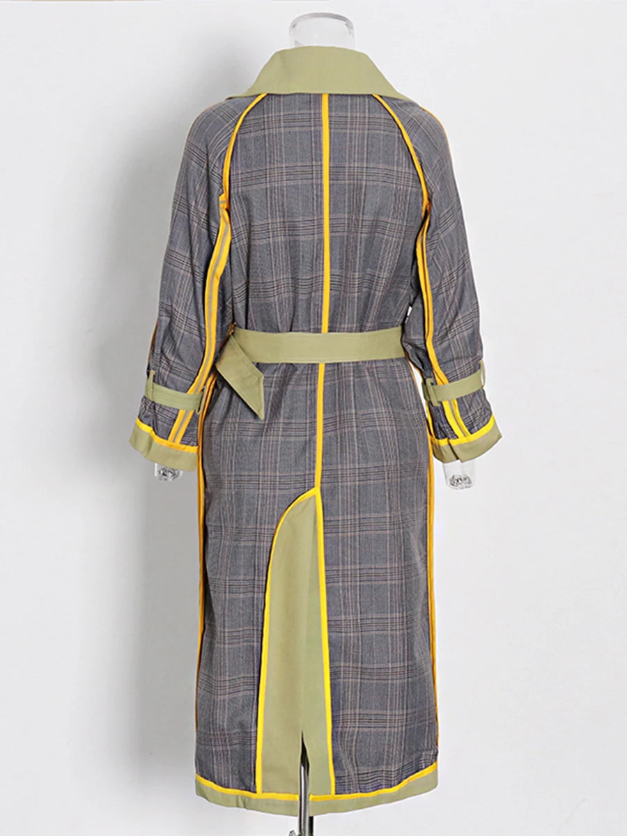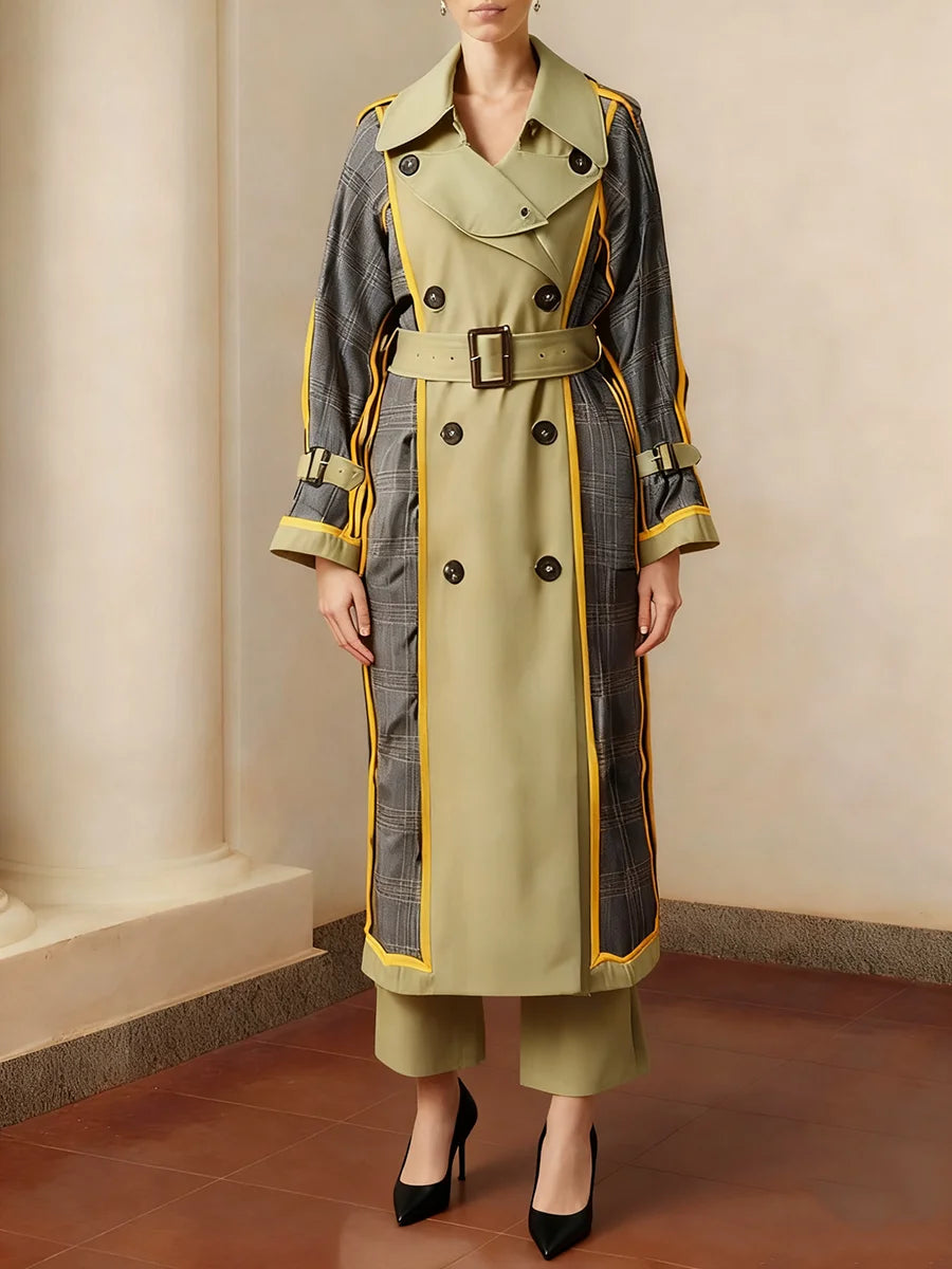 Make a bold statement with the Trend4us Luxe Contrast Panel Belted Trench Coat. Designed with a modern twist on a timeless classic, this trench coat features a double-breasted front, contrast plaid side panels with striking yellow trim, and an adjustable waist belt for a tailored fit. The structured silhouette and statement details elevate any outfit, whether you’re heading to the office, an evening out, or a stylish streetwear look. Crafted for both function and fashion, this trench coat is your go-to layering piece for the season.