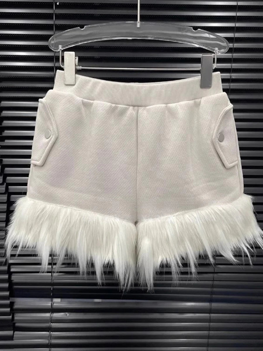 Shorts Features: High-waisted, Faux fur hemline, Elastic waistband for comfort