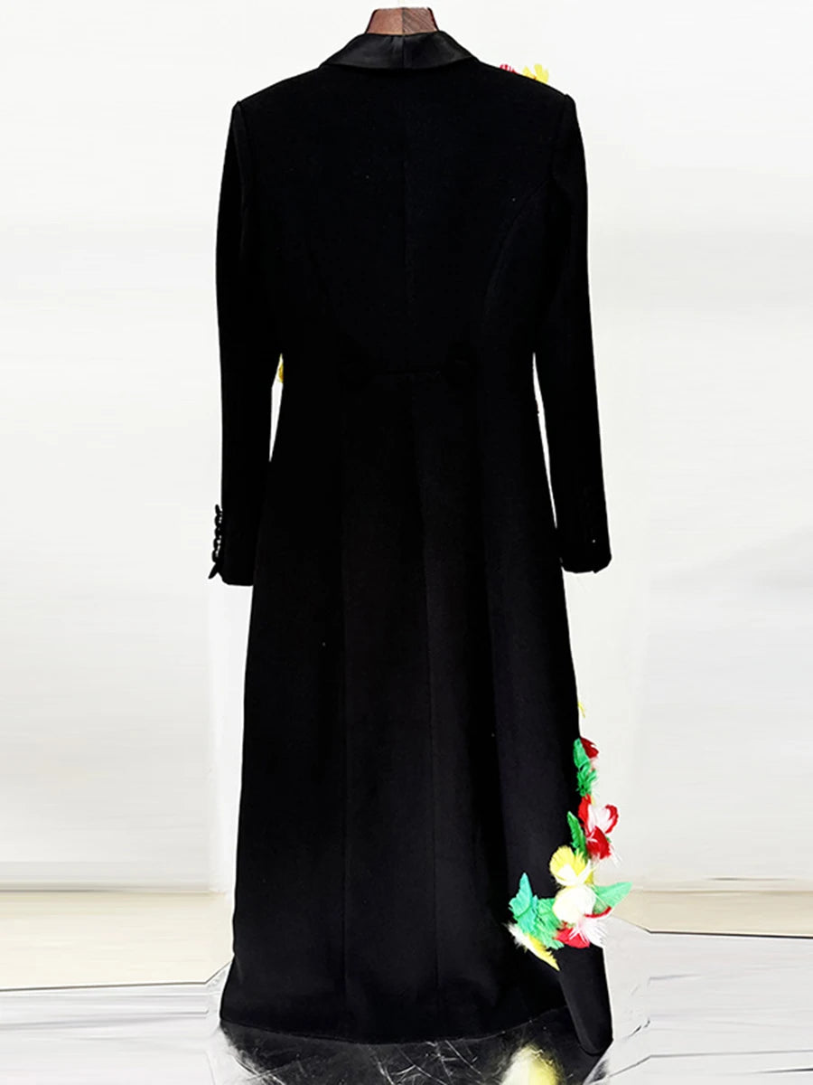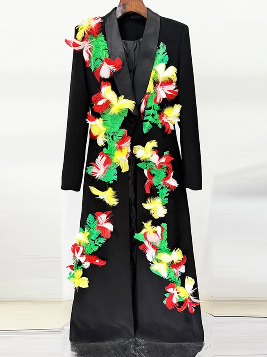 Trend4us Luxe Feather Appliqué Statement Long Blazer Coat
