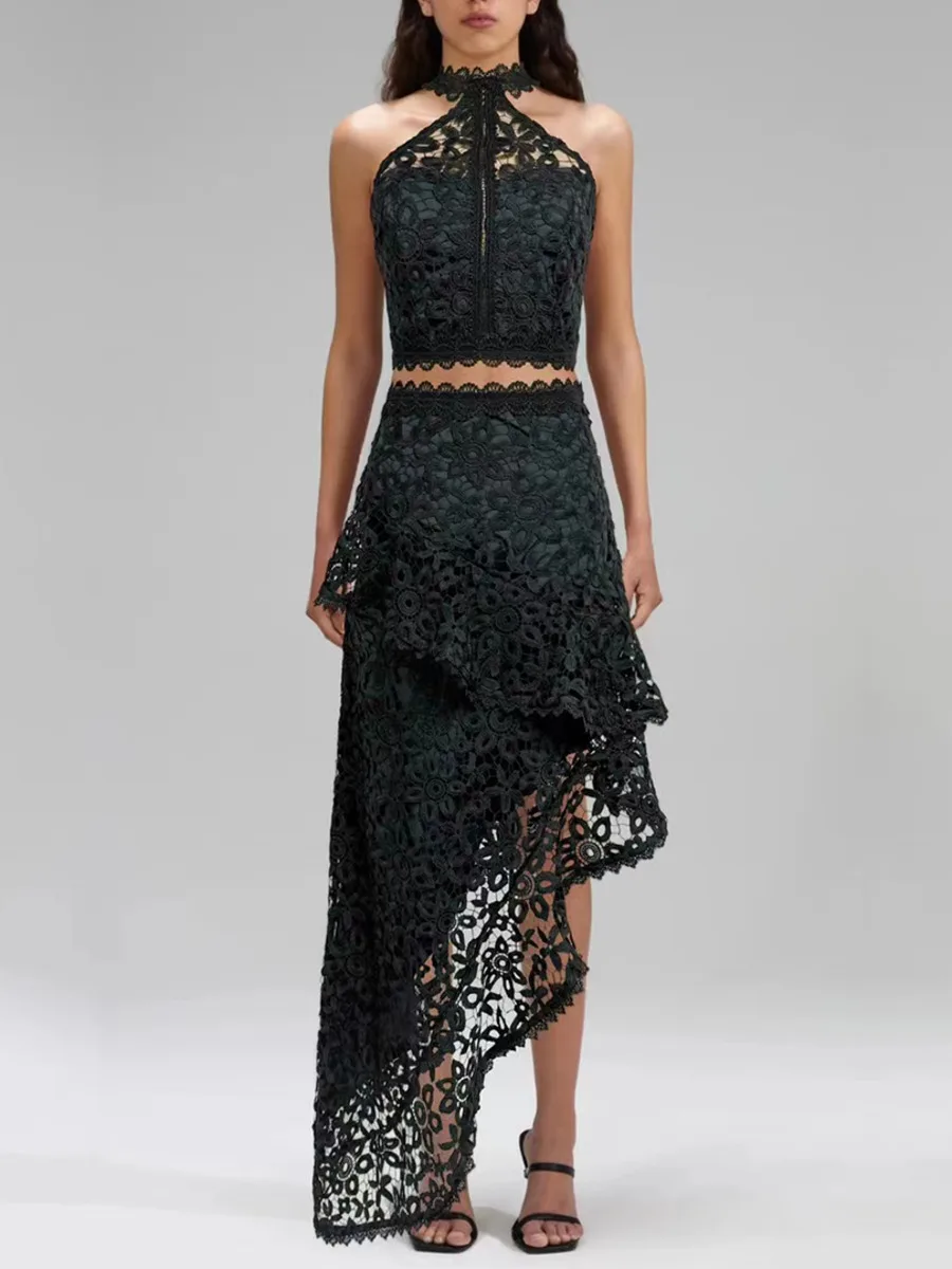 Trend4us Luxe Lace Halter Crop & Skirt Set
