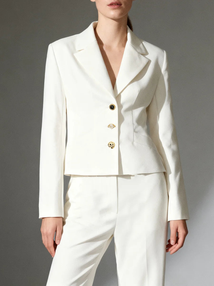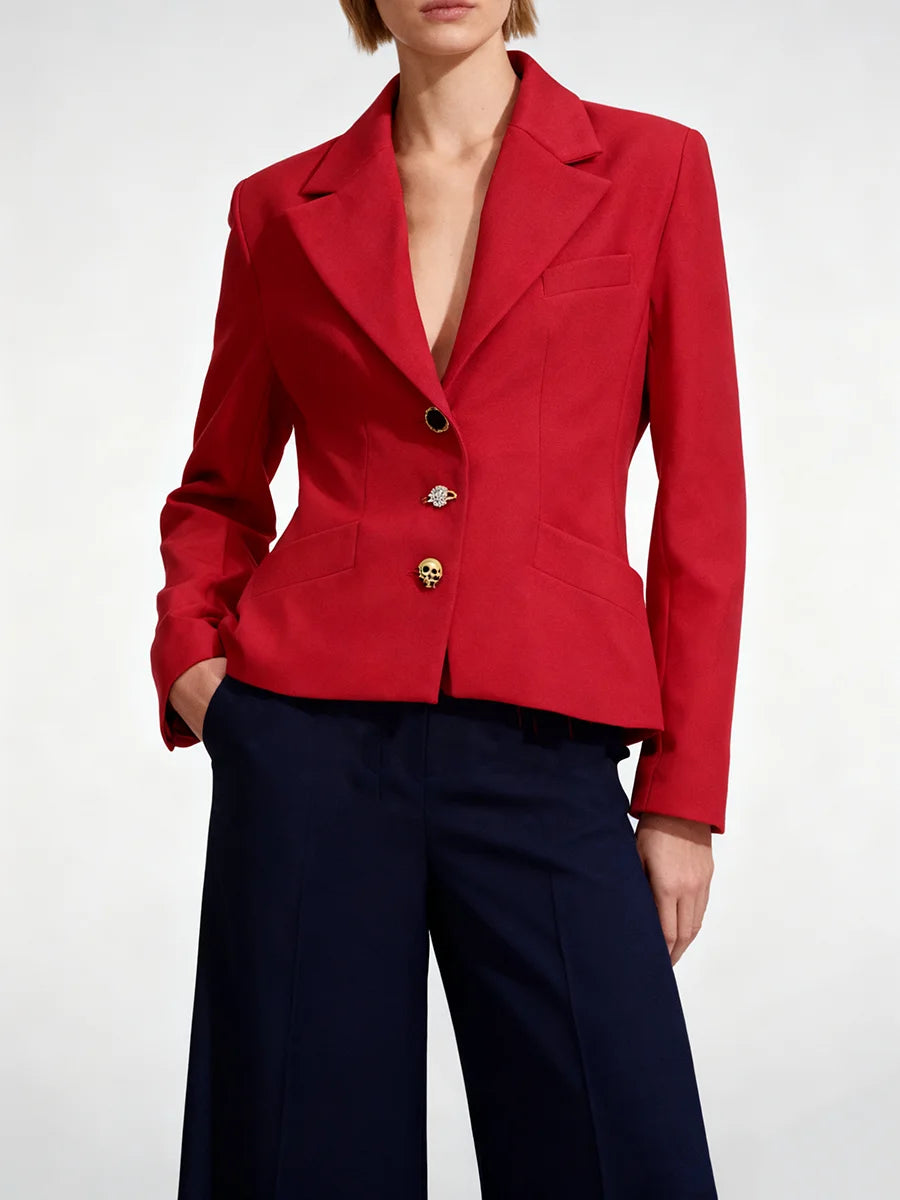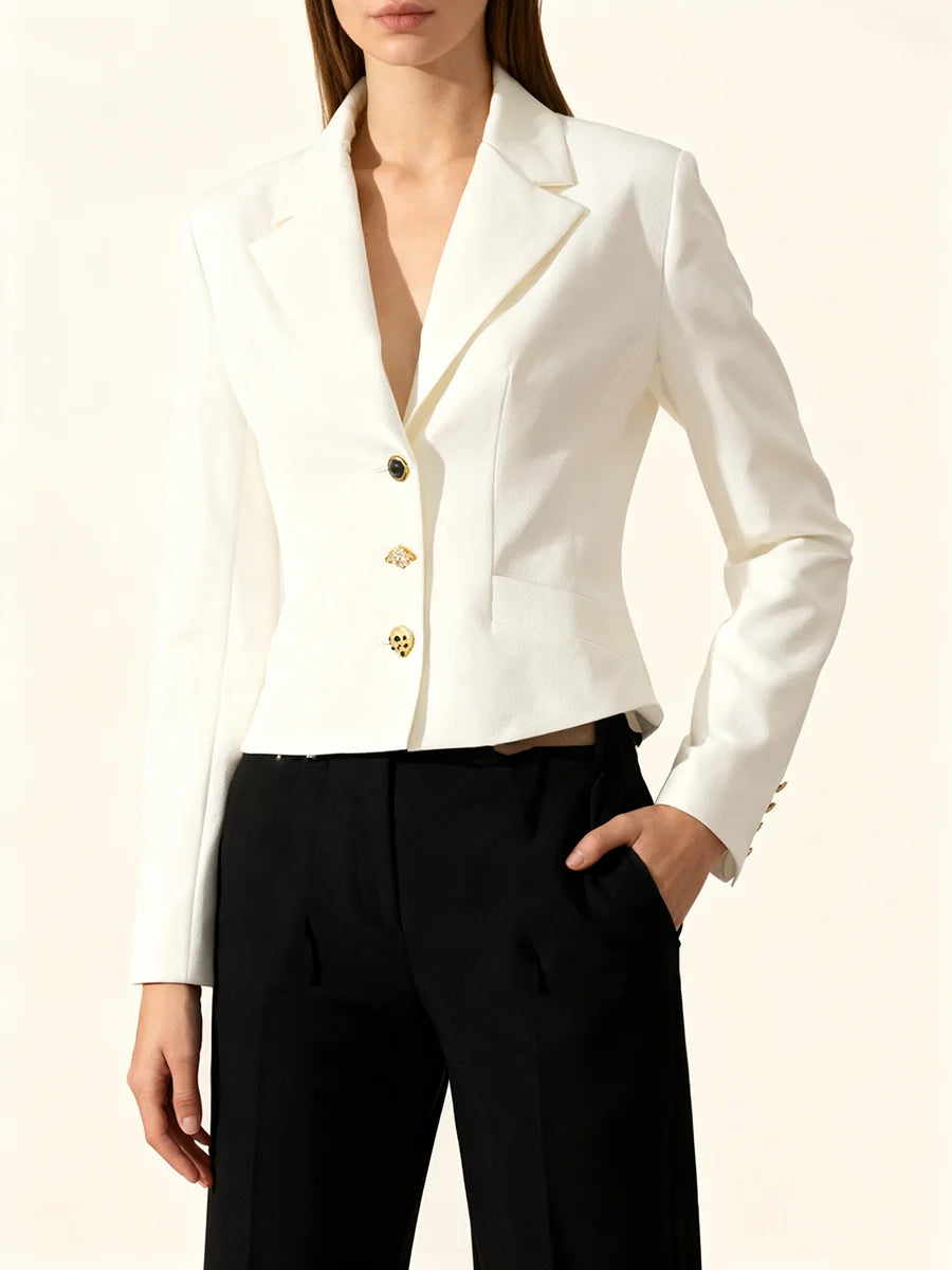 Closure: Single-breasted, gold-tone button front