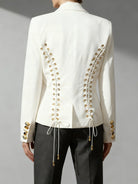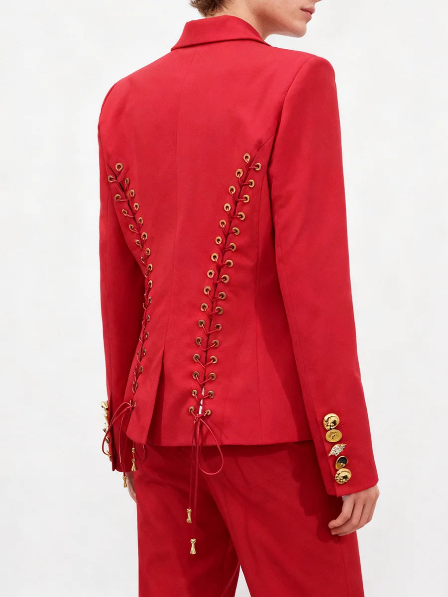 Trend4us Luxe Lace-Up Back Gold Button Blazer