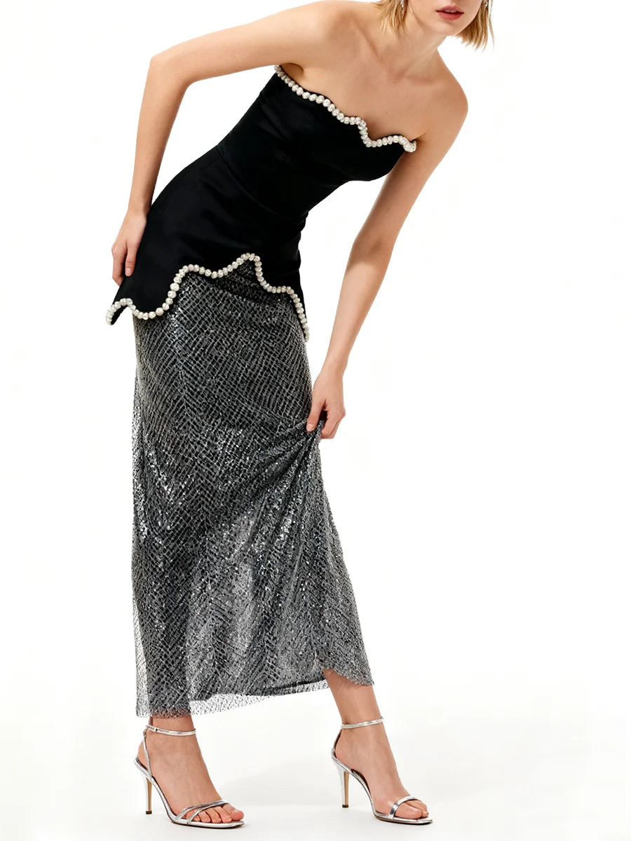 Dazzle with refined glamour in the Trend4us Luxe Modern Crystal-Trim Diamond Skirt Set — an ensemble that perfectly merges sophistication with sparkle.