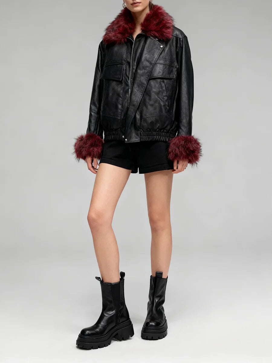 Trend4us Luxe Modern Leather Faux Fur Jacket