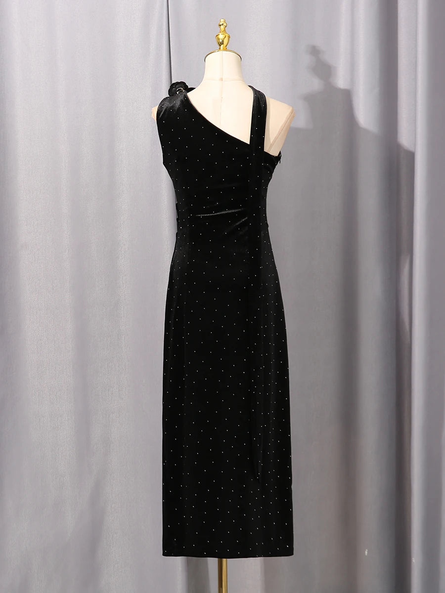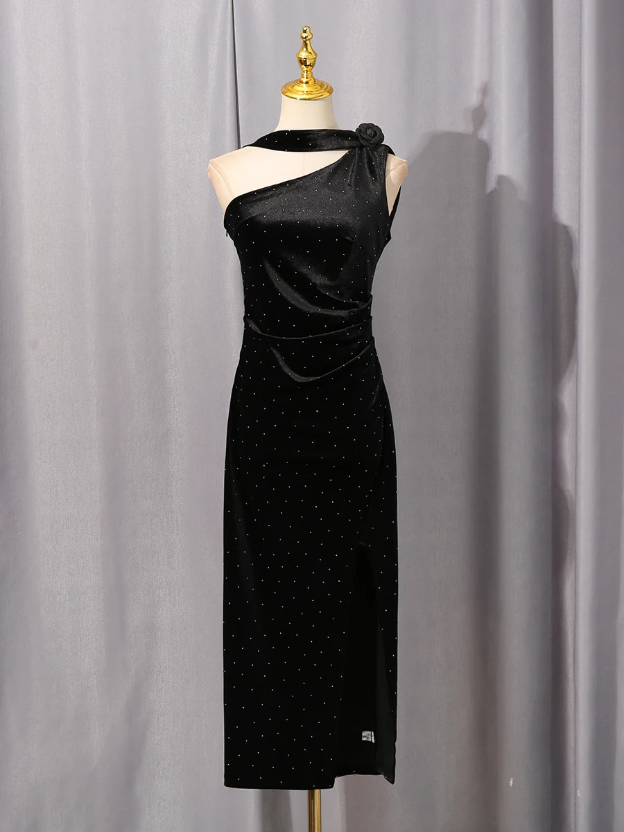 Turn heads with the Trend4us Luxe One-Shoulder Velvet Slit Maxi Dress, an elegant fusion of bold design and luxurious texture. Featuring an asymmetrical one-shoulder neckline with a chic choker strap, a figure-enhancing velvet silhouette, and a daring thigh-high slit, this piece embodies modern sophistication.