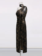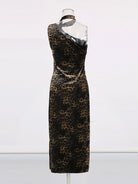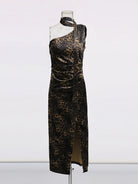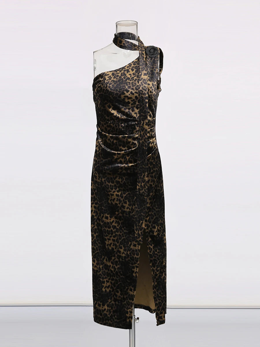 Available in two stunning variations—Leopard Print Velvet for a fierce statement and Crystal-Studded Black Velvet for a glamorous sparkling finish—this dress transitions effortlessly from cocktail evenings to red-carpet moments.
