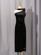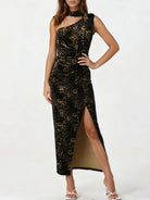 Trend4us Luxe One-Shoulder Velvet Slit Maxi Dress