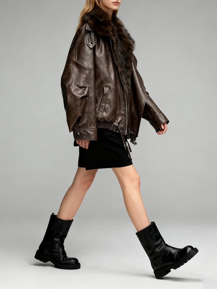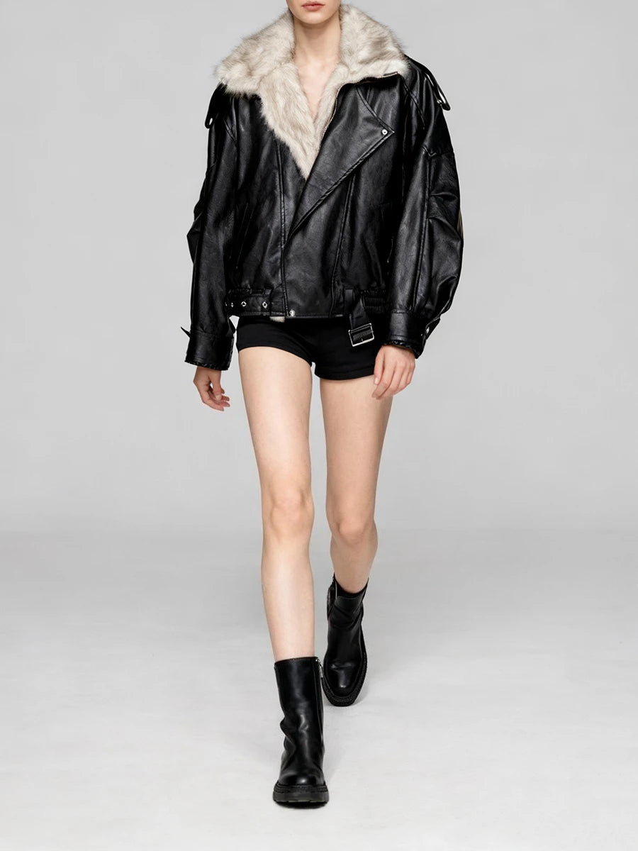 Trend4us Luxe Oversized Leather Faux Fur Biker Jacket