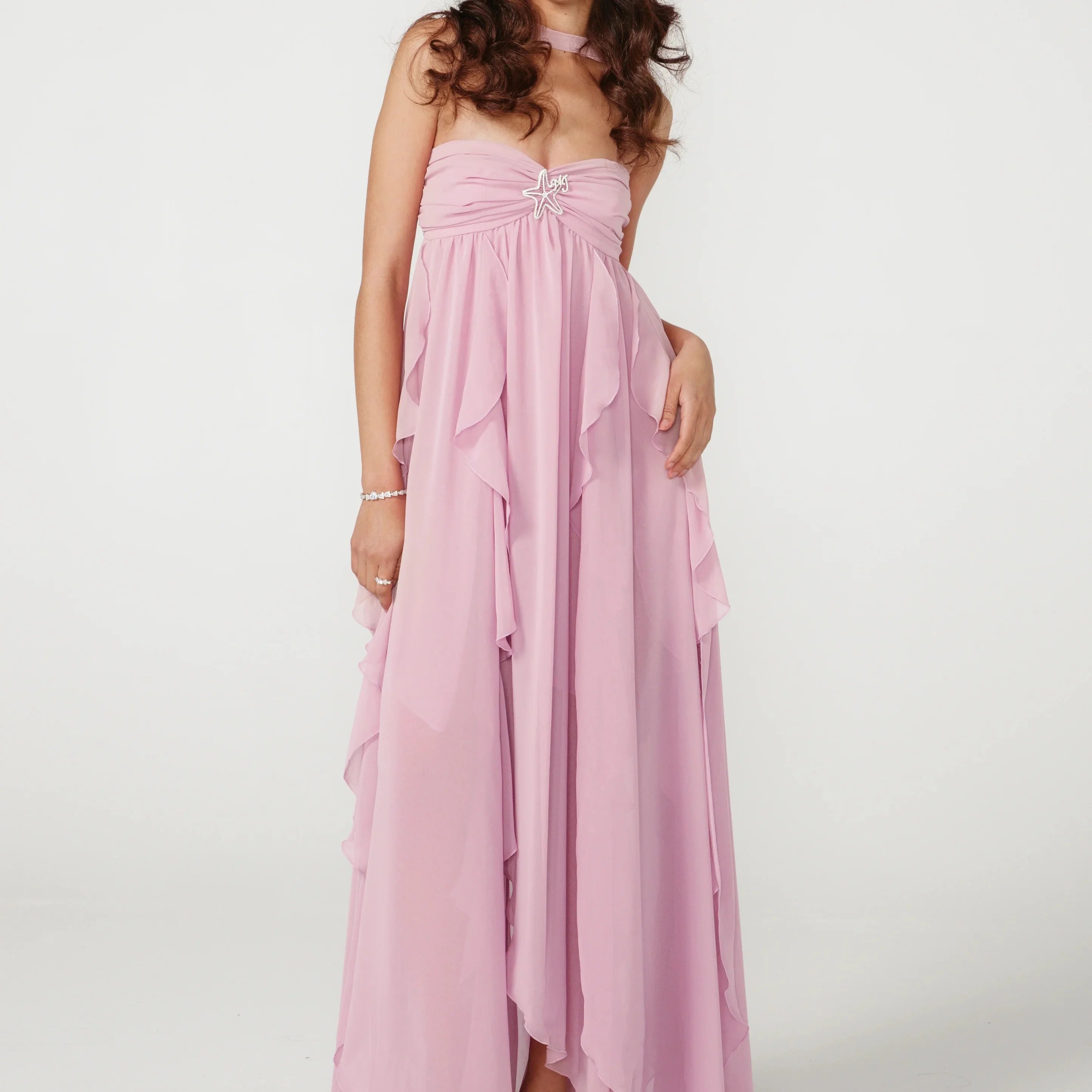 Trend4us Luxe Ruffled Backless Maxi Dress