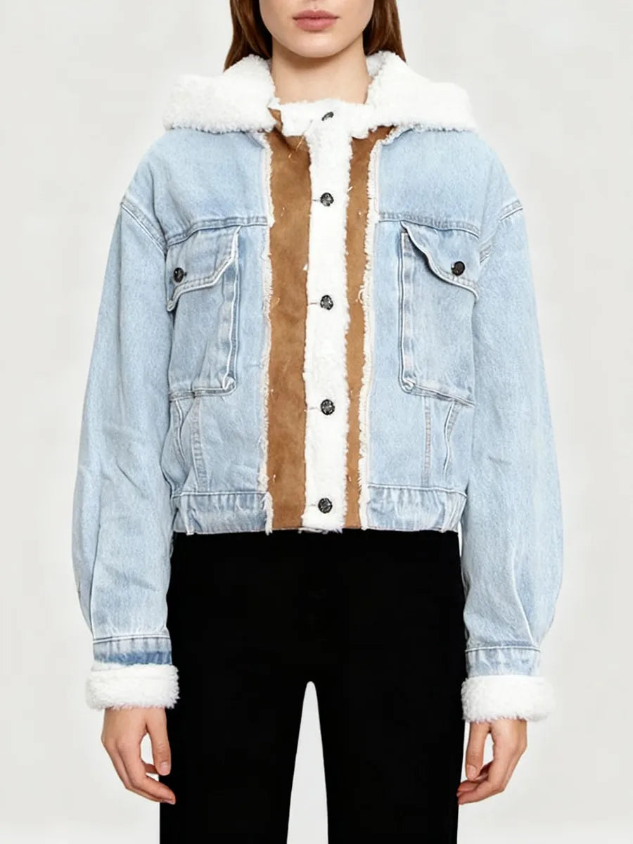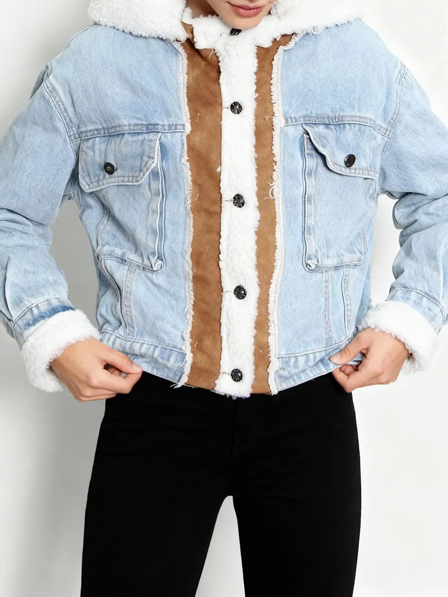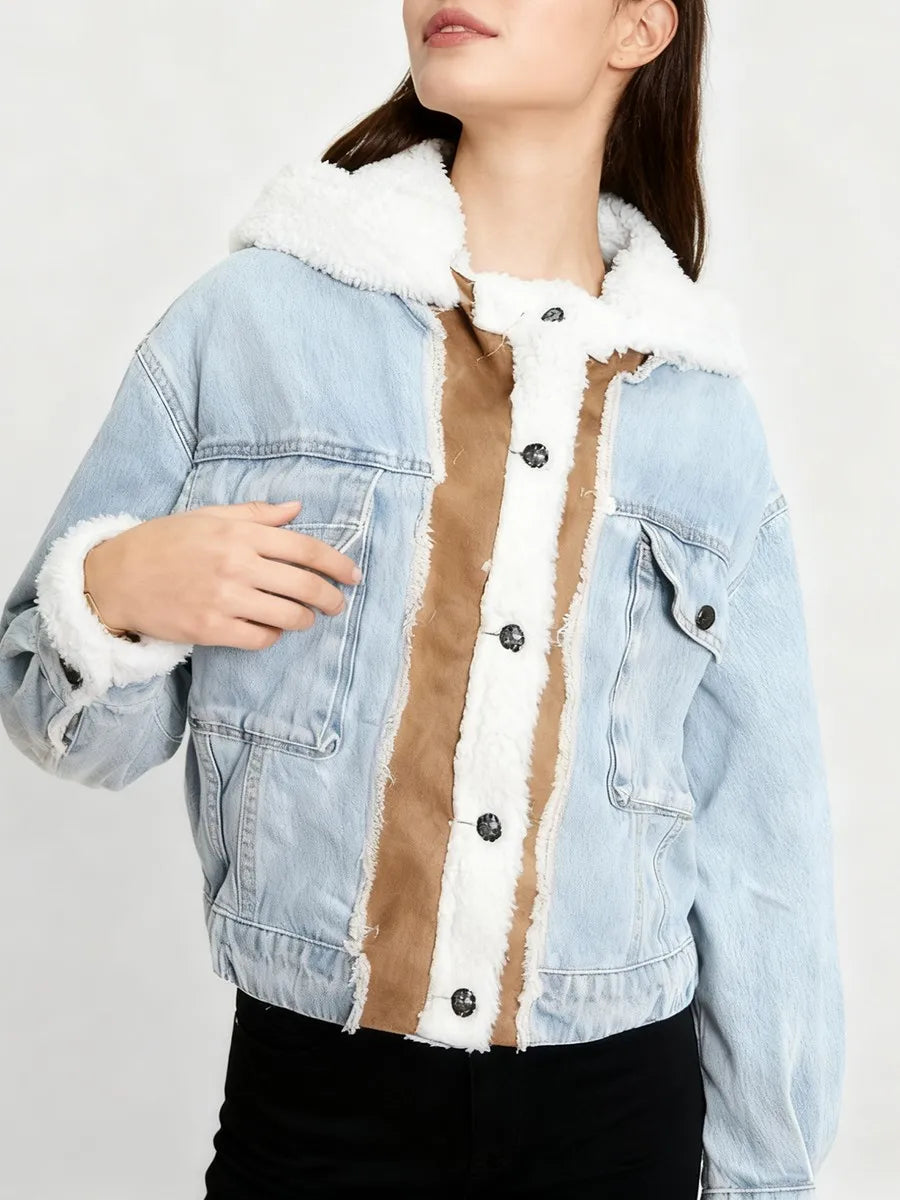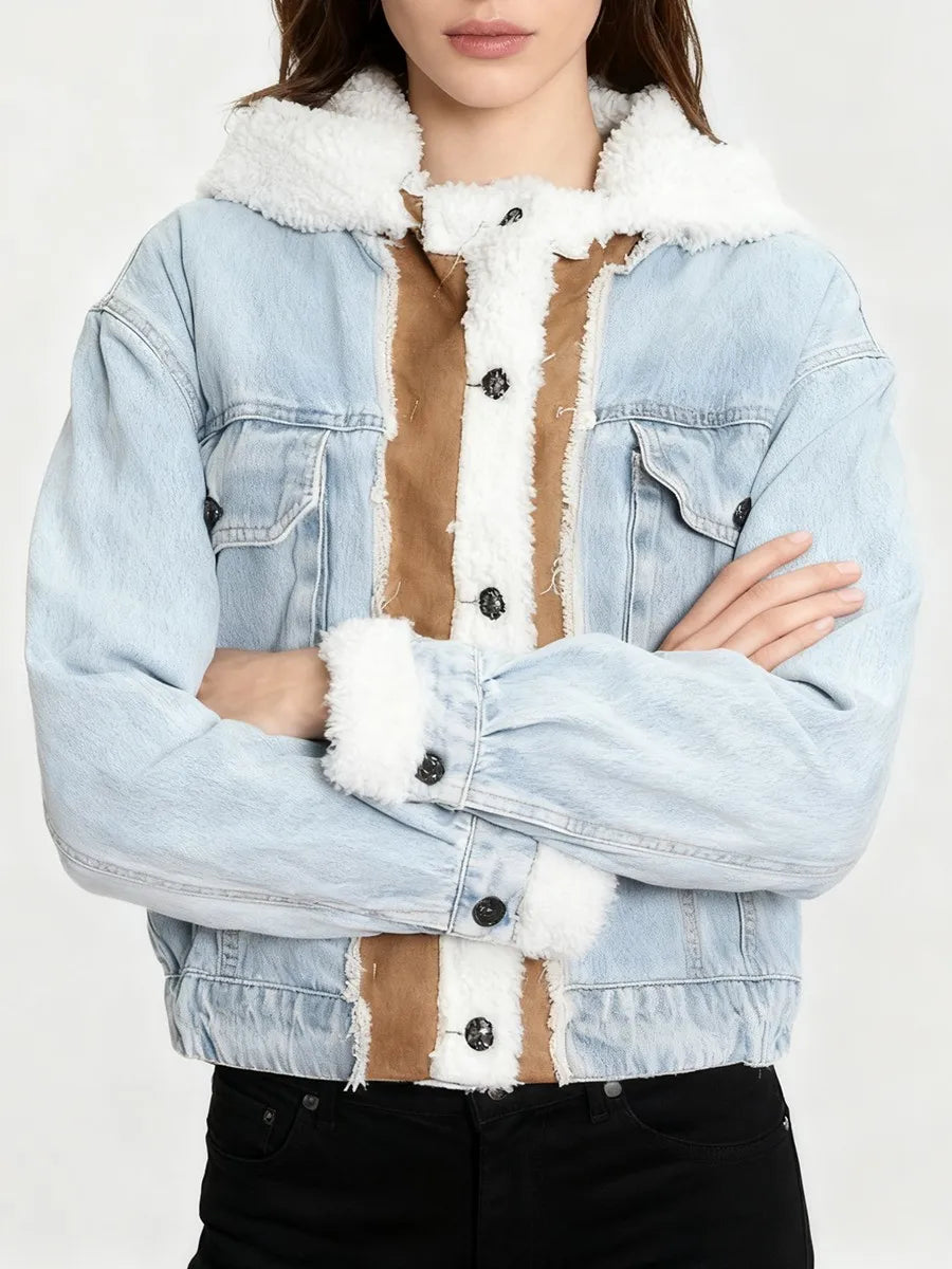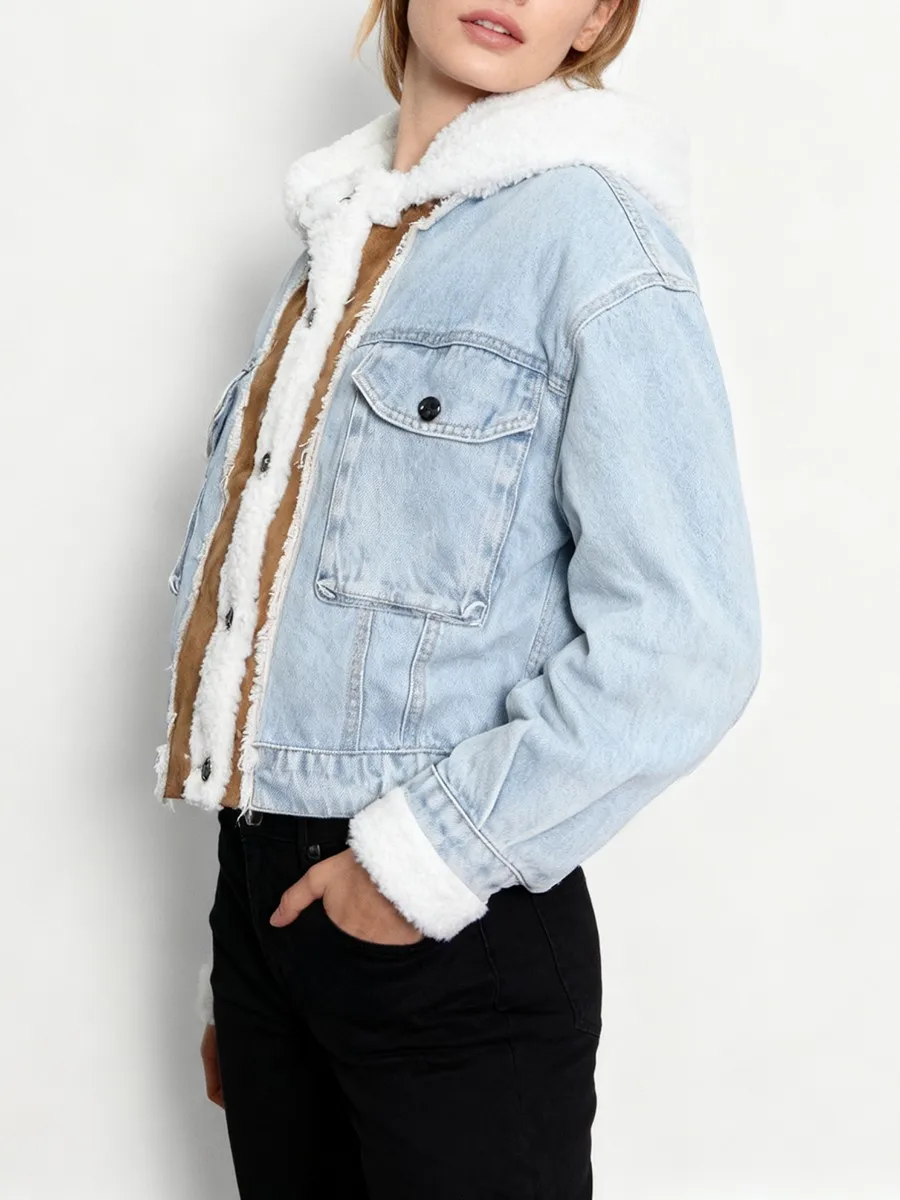 Trend4us Luxe Shearling-Lined Denim Hooded Jacket