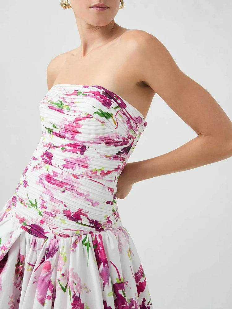 Trend4us Luxe Strapless Floral Draped High-Low Gown
