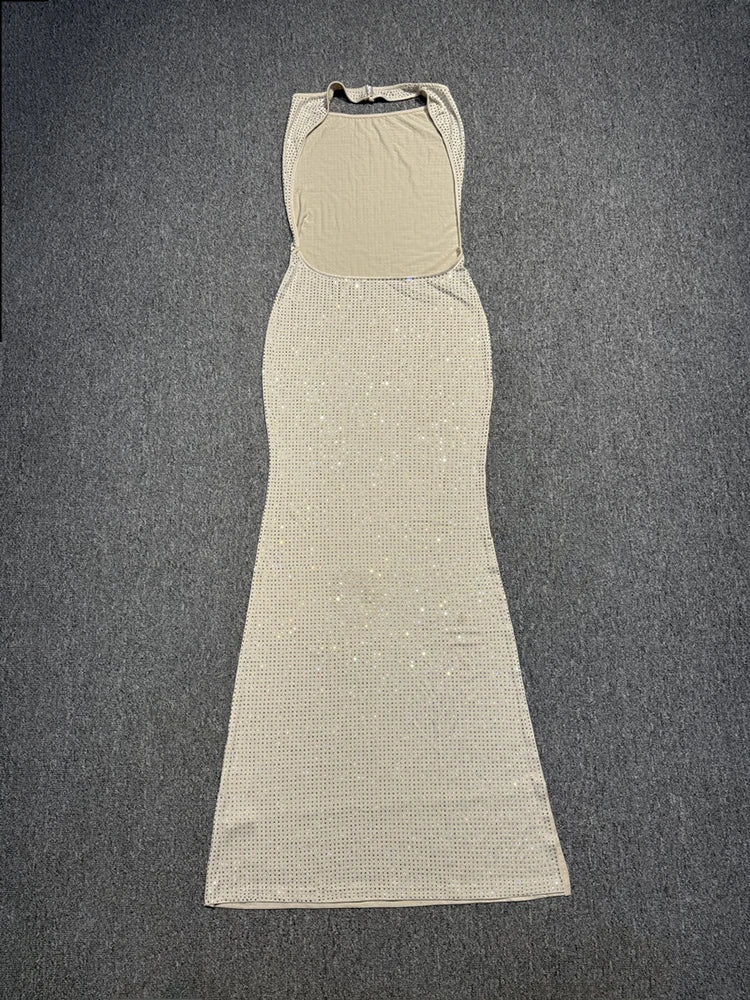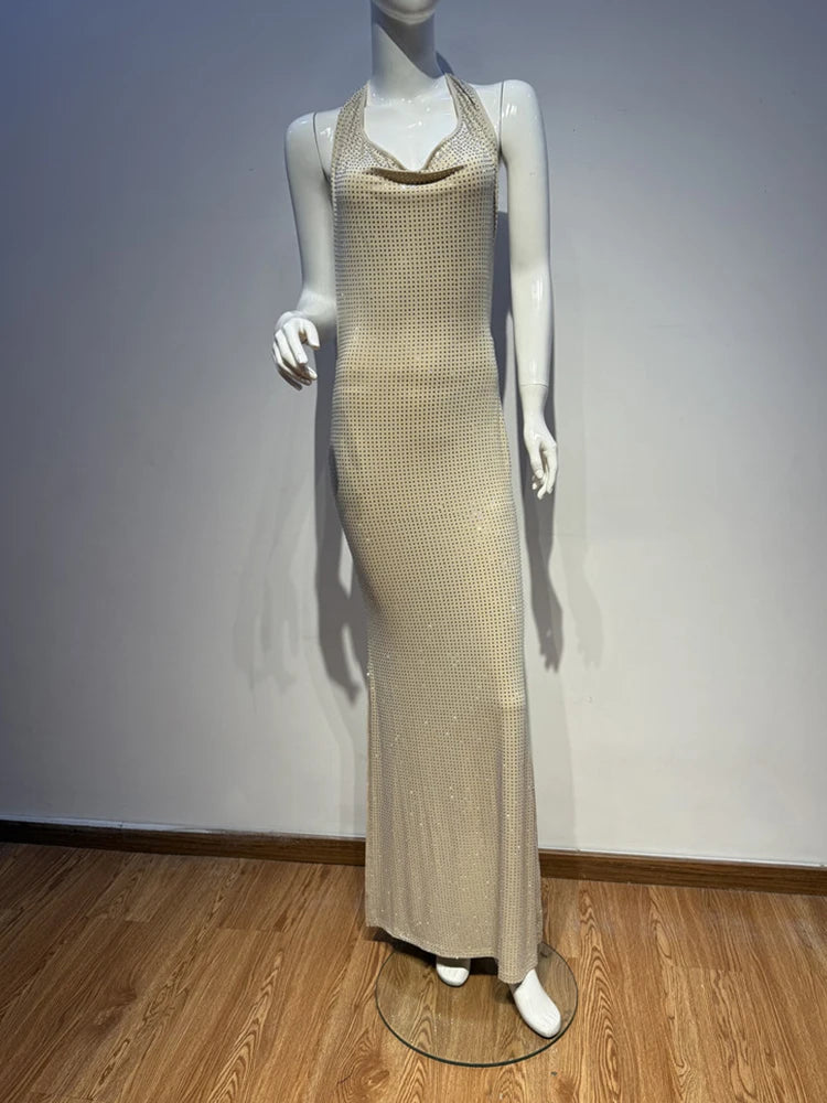 Trend4us Rhinestone Halter Backless Maxi Dress