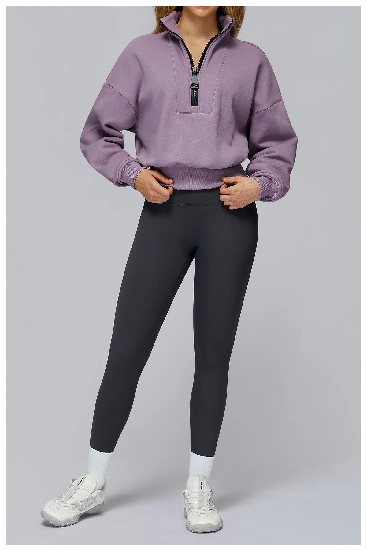 Perfect for winter workouts, lounging, or casual outings, this sweatshirt pairs effortlessly with leggings, joggers, or jeans for an easy yet elevated cold-weather fit.