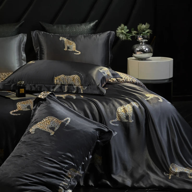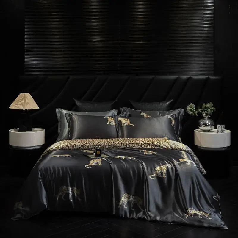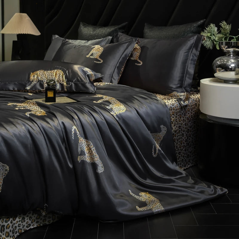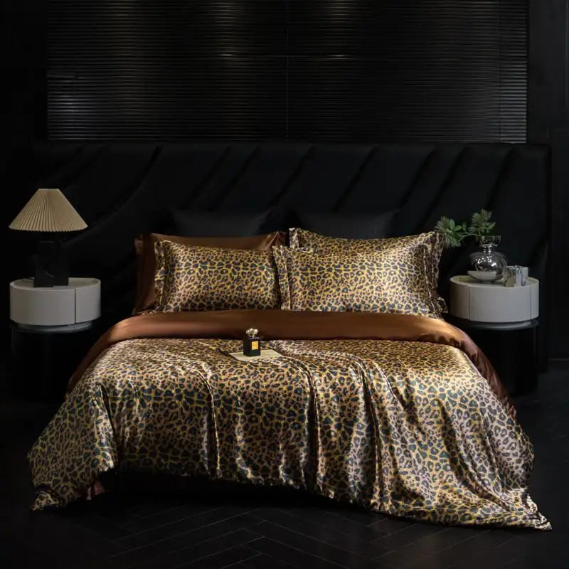 Trend4us Luxe Leopard Print Satin Bedding Set