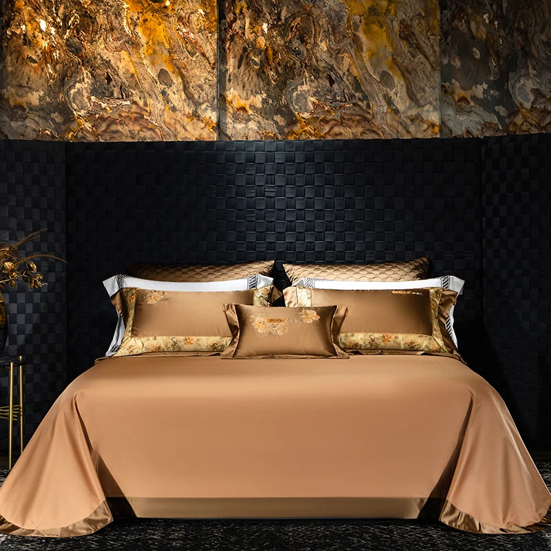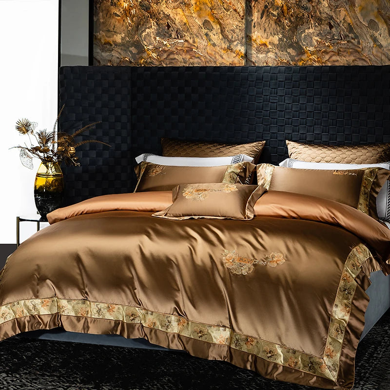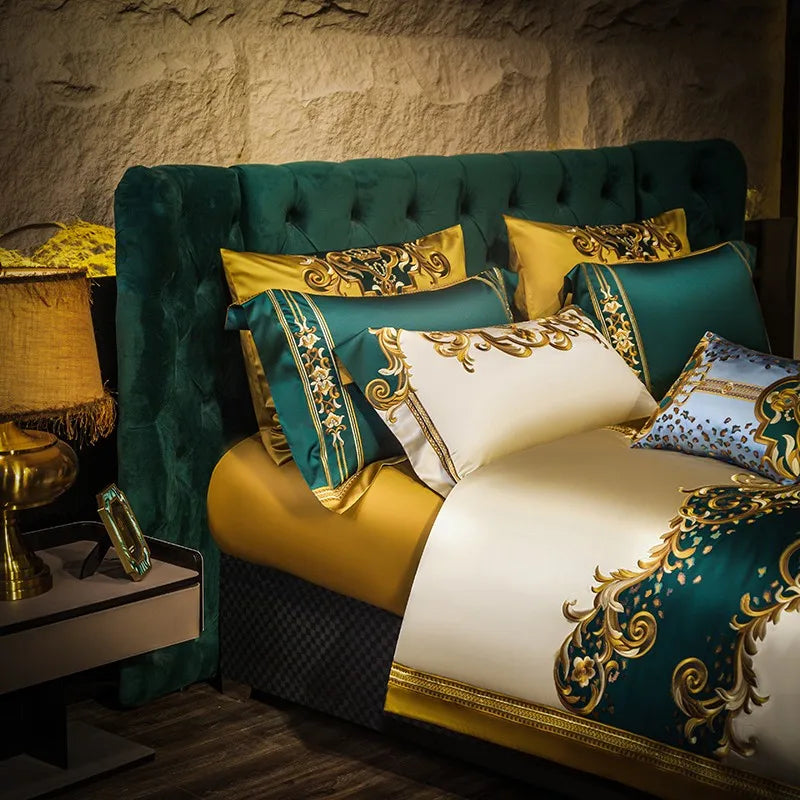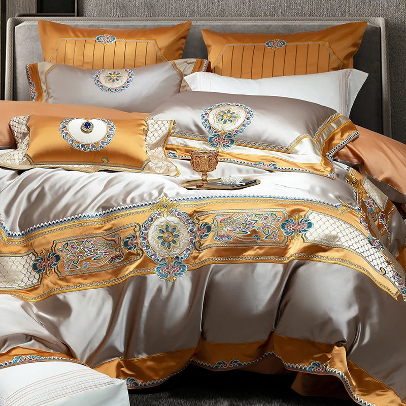 Trend4us Luxe Silk Embroidered Royal Bedding Set