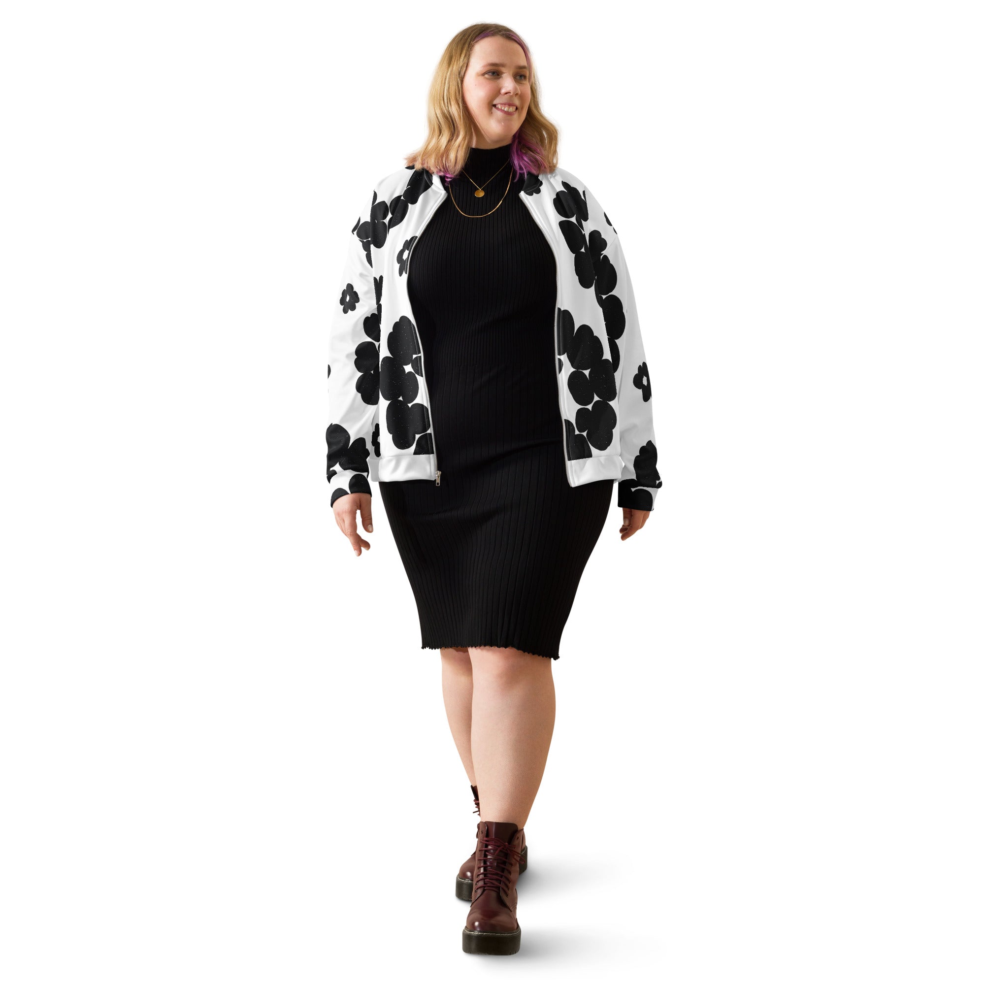 Make a bold statement with the Trend4us Floral Unisex Bomber Jacket. Designed for all genders, this standout piece features vibrant floral prints on a classic bomber silhouette. With a zip-up front, ribbed cuffs, and a relaxed fit, it’s the perfect blend of edgy and elegant. Layer it over casual or sporty outfits for instant street-style appeal, all year round.