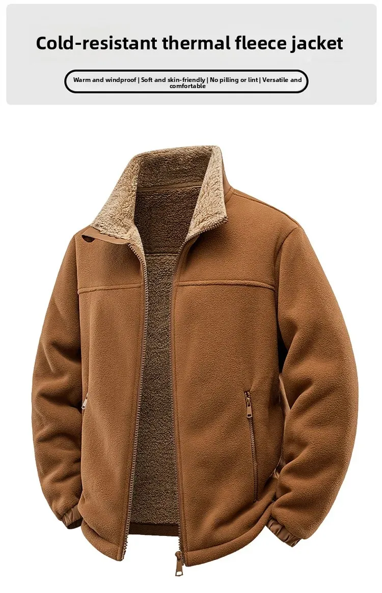 Trend4us Men’s Sherpa-Lined Fleece Zip-Up Jacket