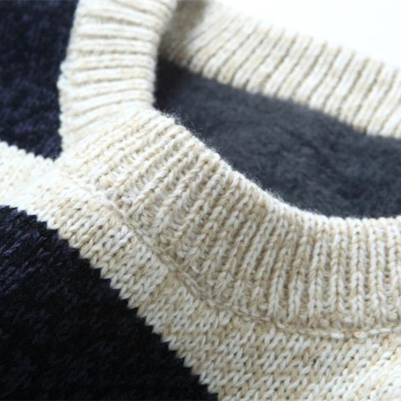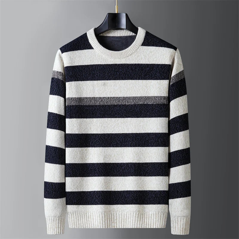 Upgrade your seasonal wardrobe with the Trend4us Men's Modern Striped Knit Sweater—the perfect blend of comfort, style, and functionality.