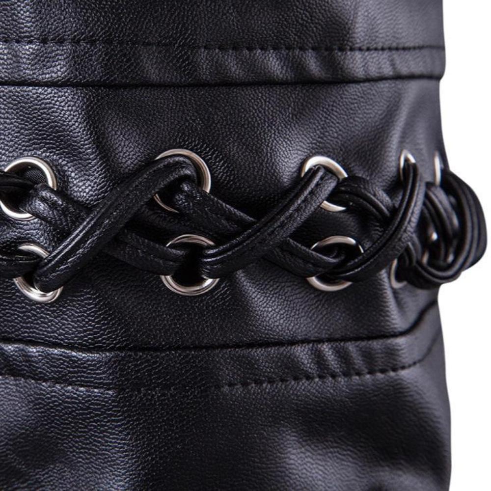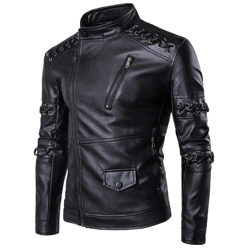 Trend4us Men's Stylish Lace-Up Faux Leather Biker Jacket