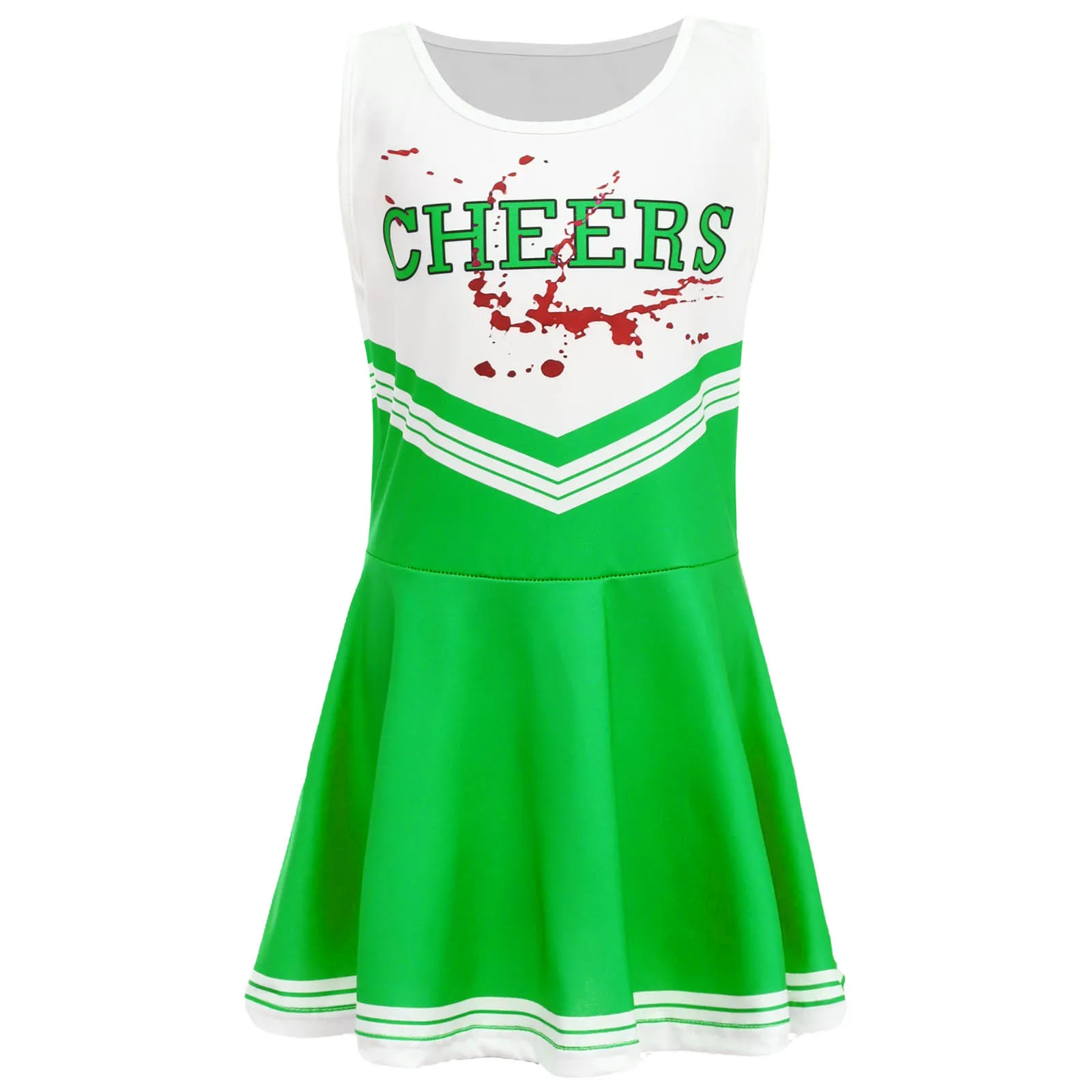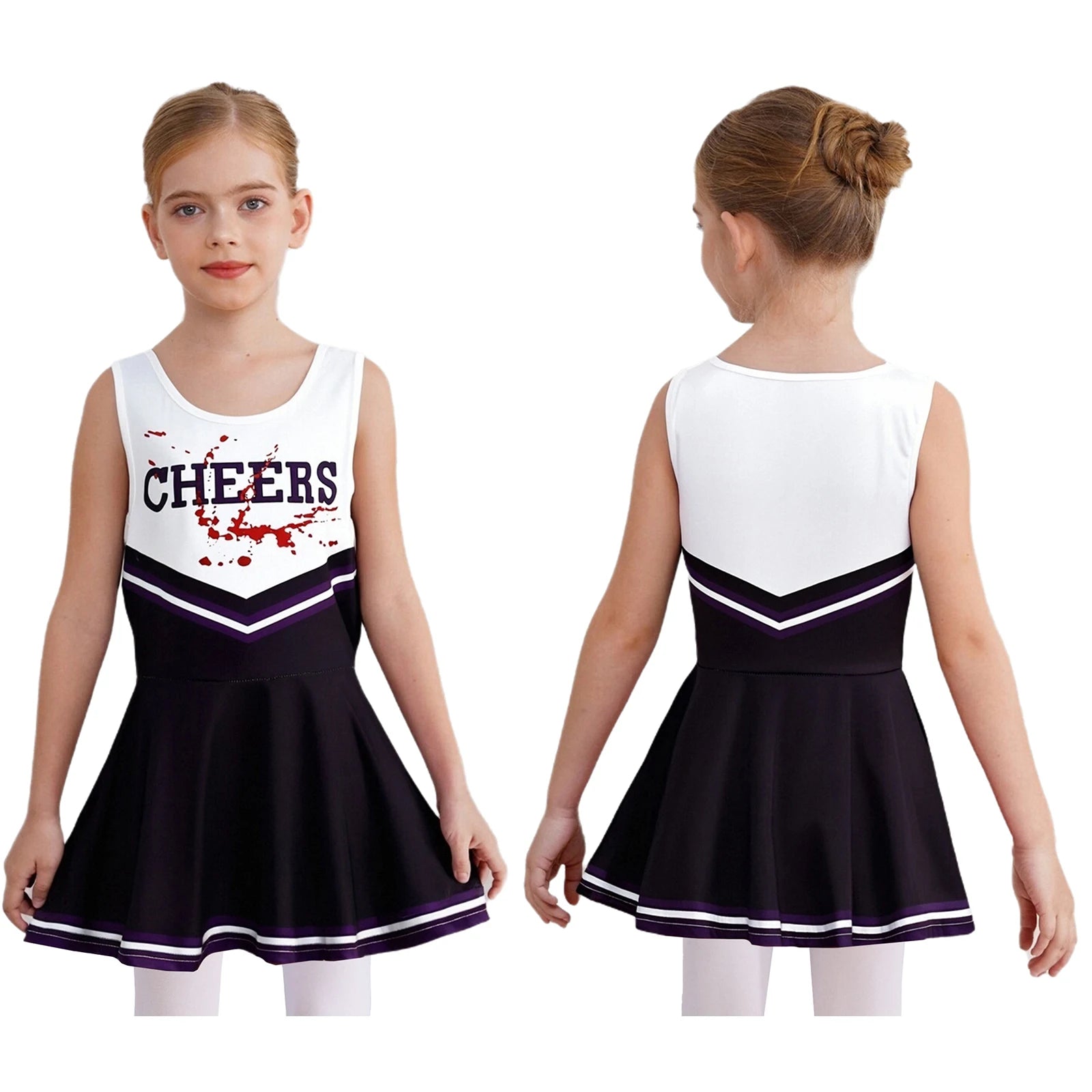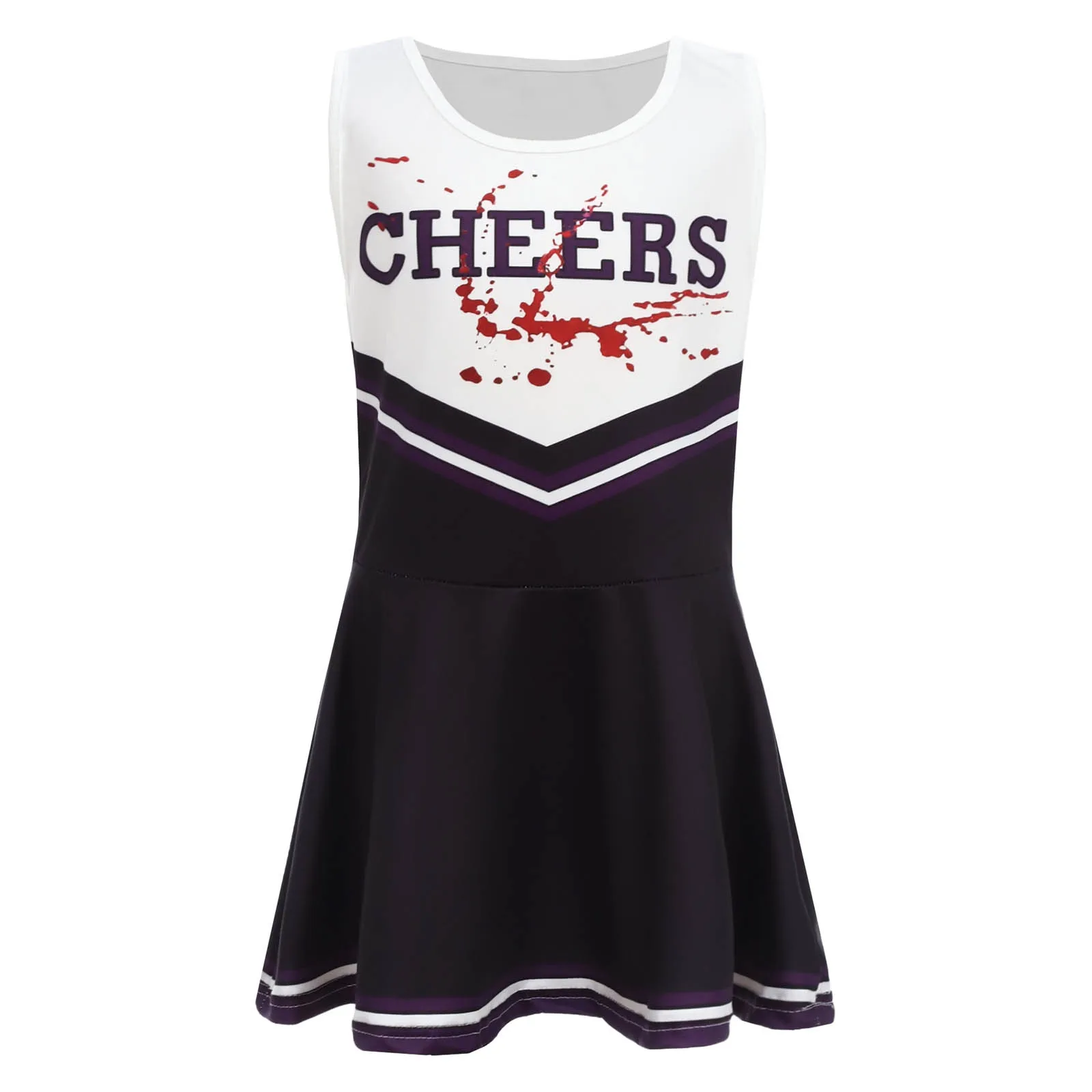 Bring spooky spirit and cheer to Halloween with the Trend4us Kids Halloween Cheerleader Costume Dress — a playful mix of sporty energy and festive fun.