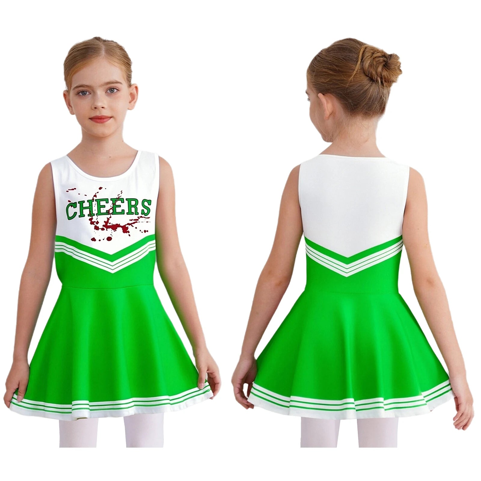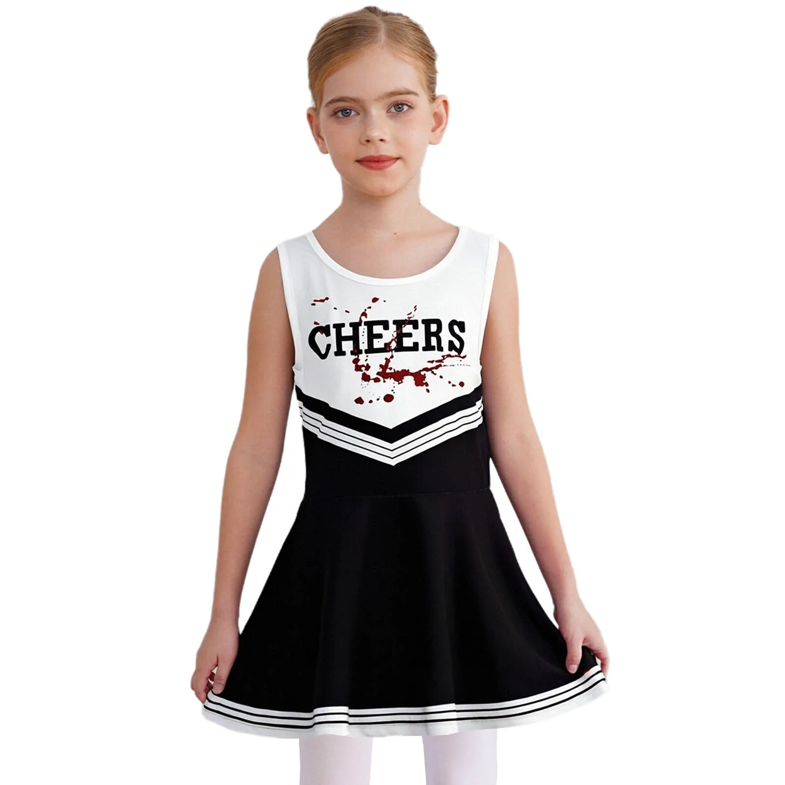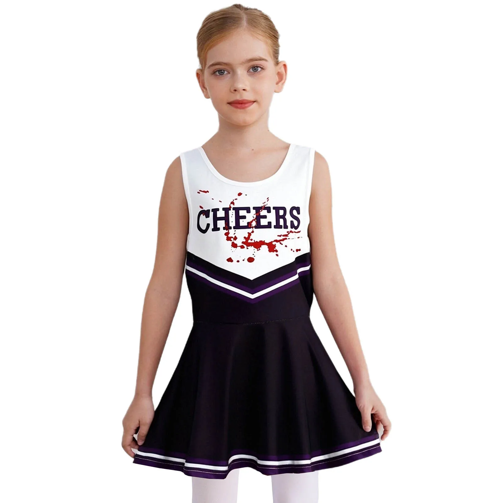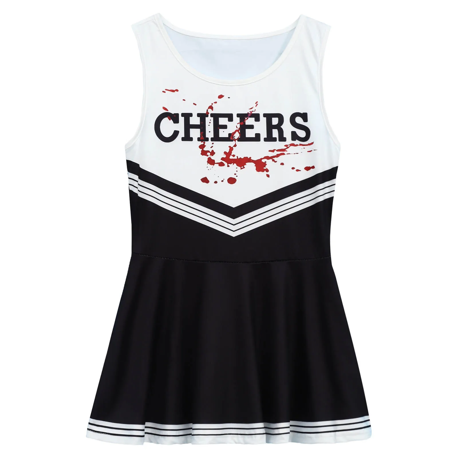 Bring spooky spirit and cheer to Halloween with the Trend4us Kids Halloween Cheerleader Costume Dress — a playful mix of sporty energy and festive fun.