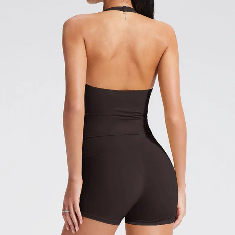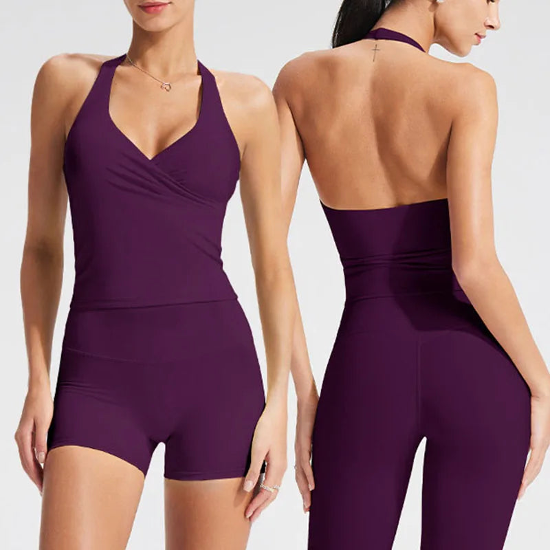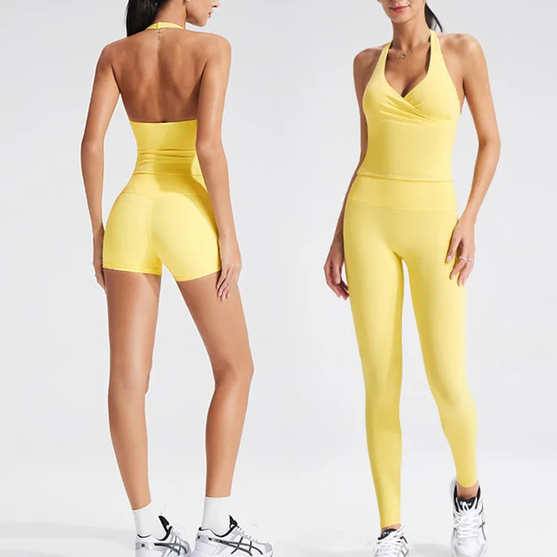 Trend4us Seamless Halter Yoga Vest & Leggings Shorts Set