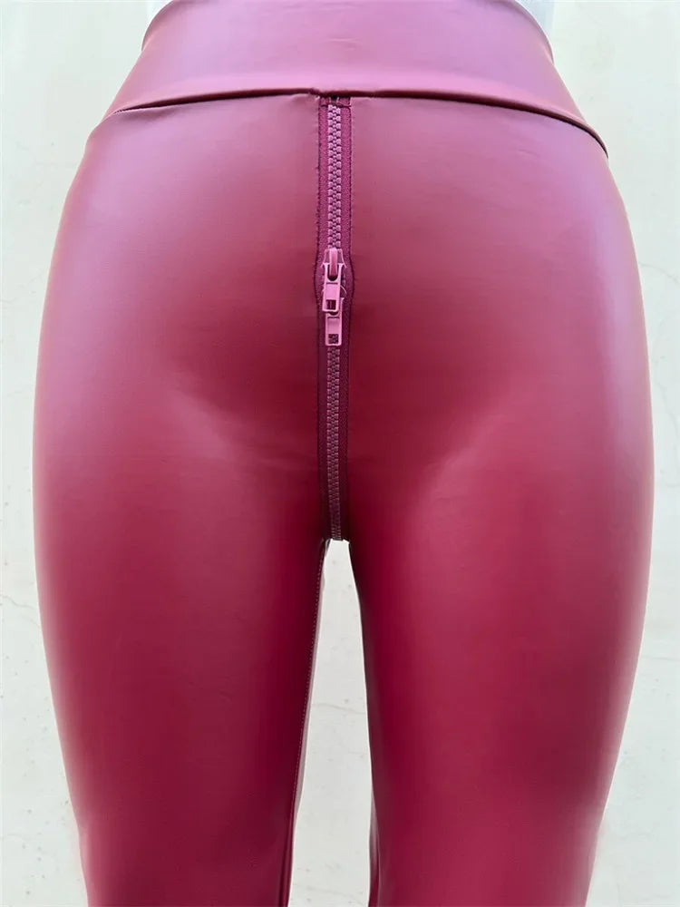Trend4us Sleek High-Shine Zip-Front Faux Leather Pants