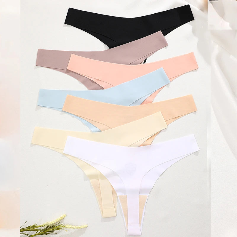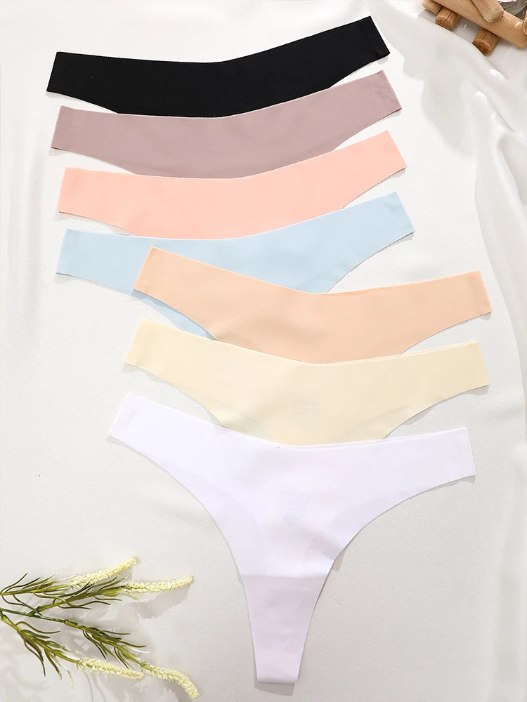 Trend4us Ice Silk Seamless Invisible Thong Panties – 7-Pack Set