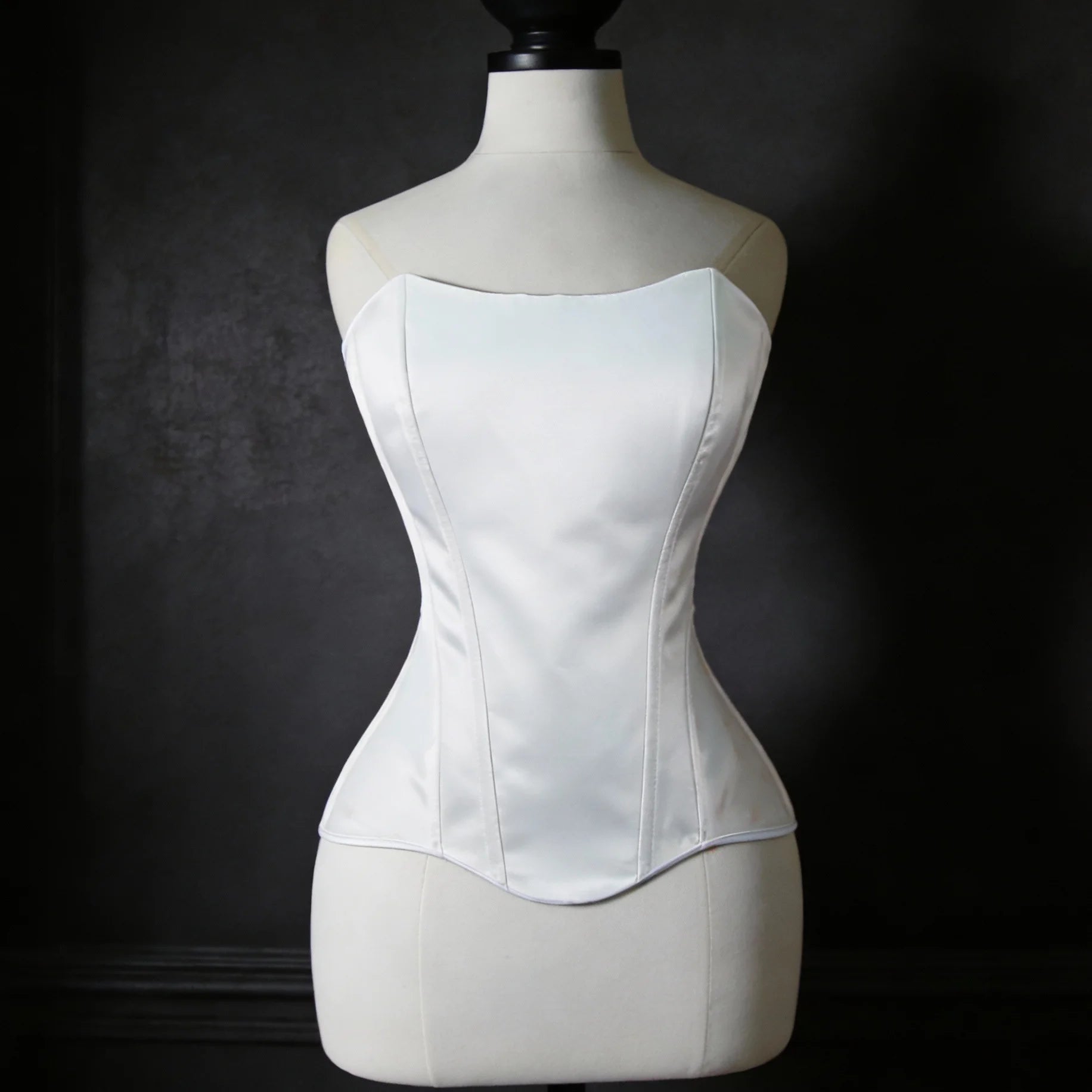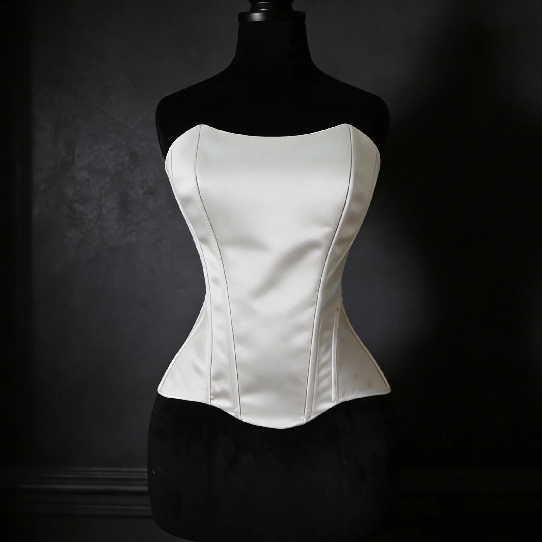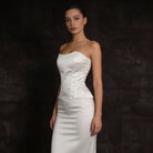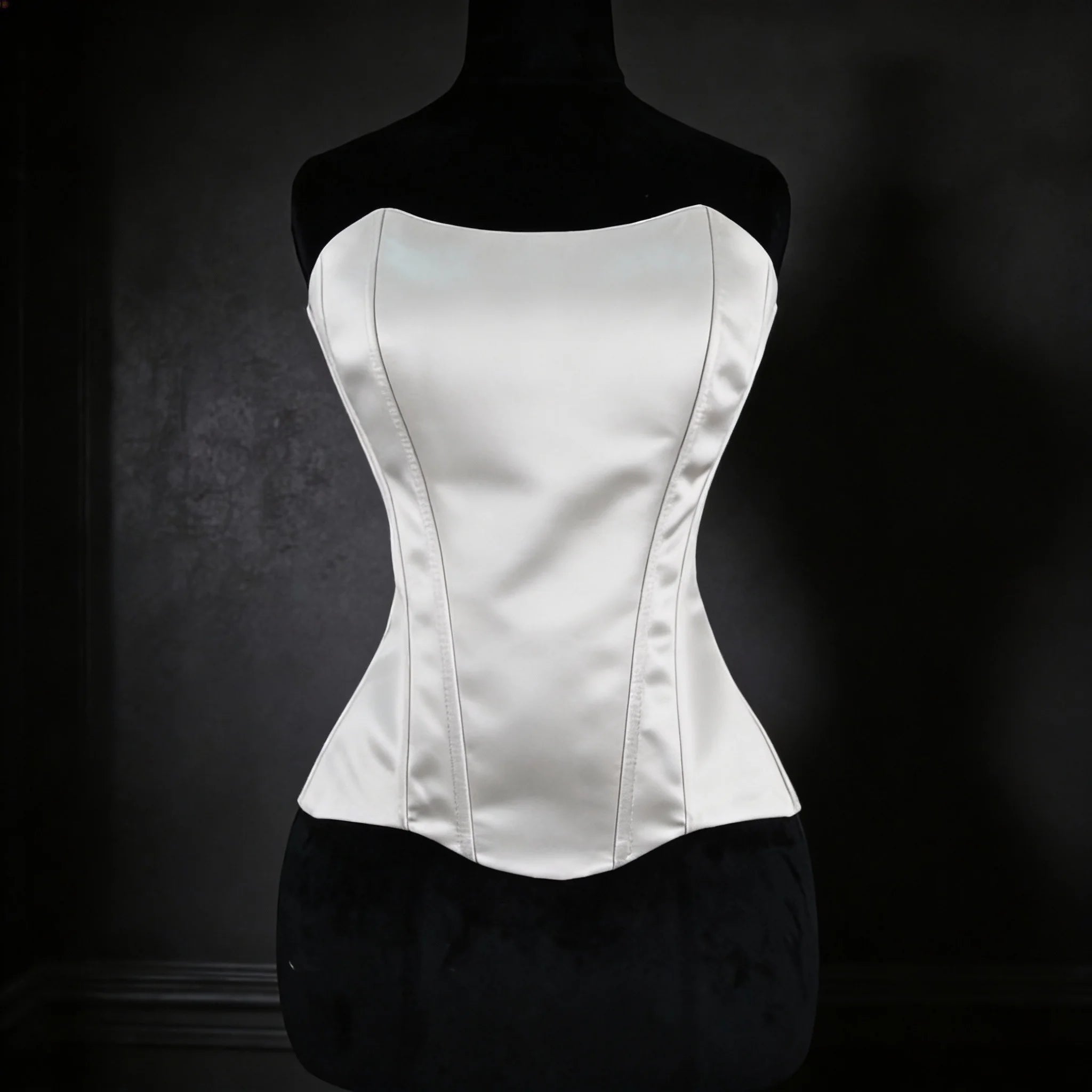 The strapless neckline highlights the shoulders and décolletage, while the lace-up back allows adjustable cinching for a custom, body-contouring fit. Perfect for bridal styling, evening wear, or modern power looks, this corset is a timeless wardrobe essential.