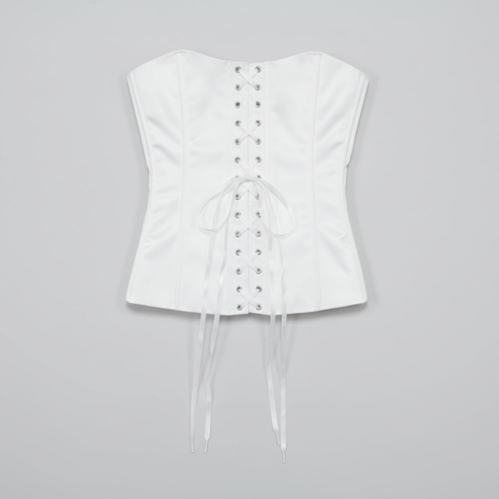 Trend4us Luxe Strapless Satin Lace-Up Corset Bustier Top