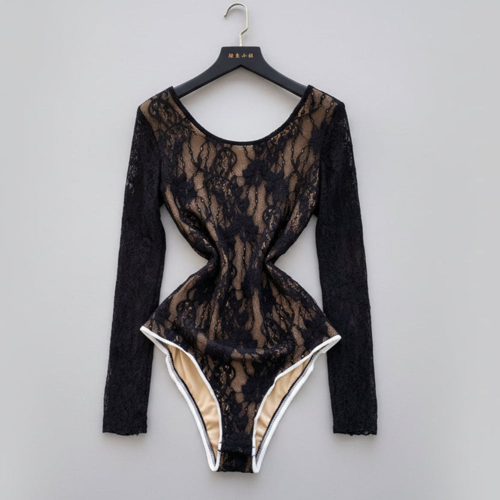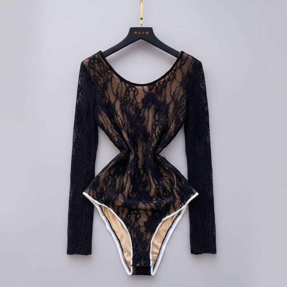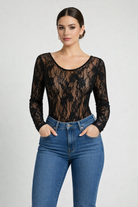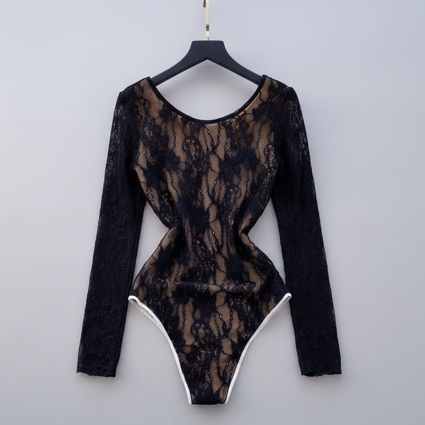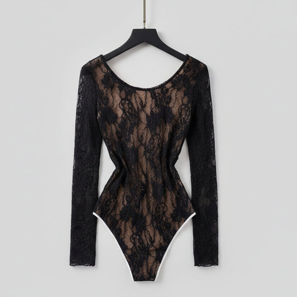 Trend4us Modern Sheer Lace Long-Sleeve Bodysuit