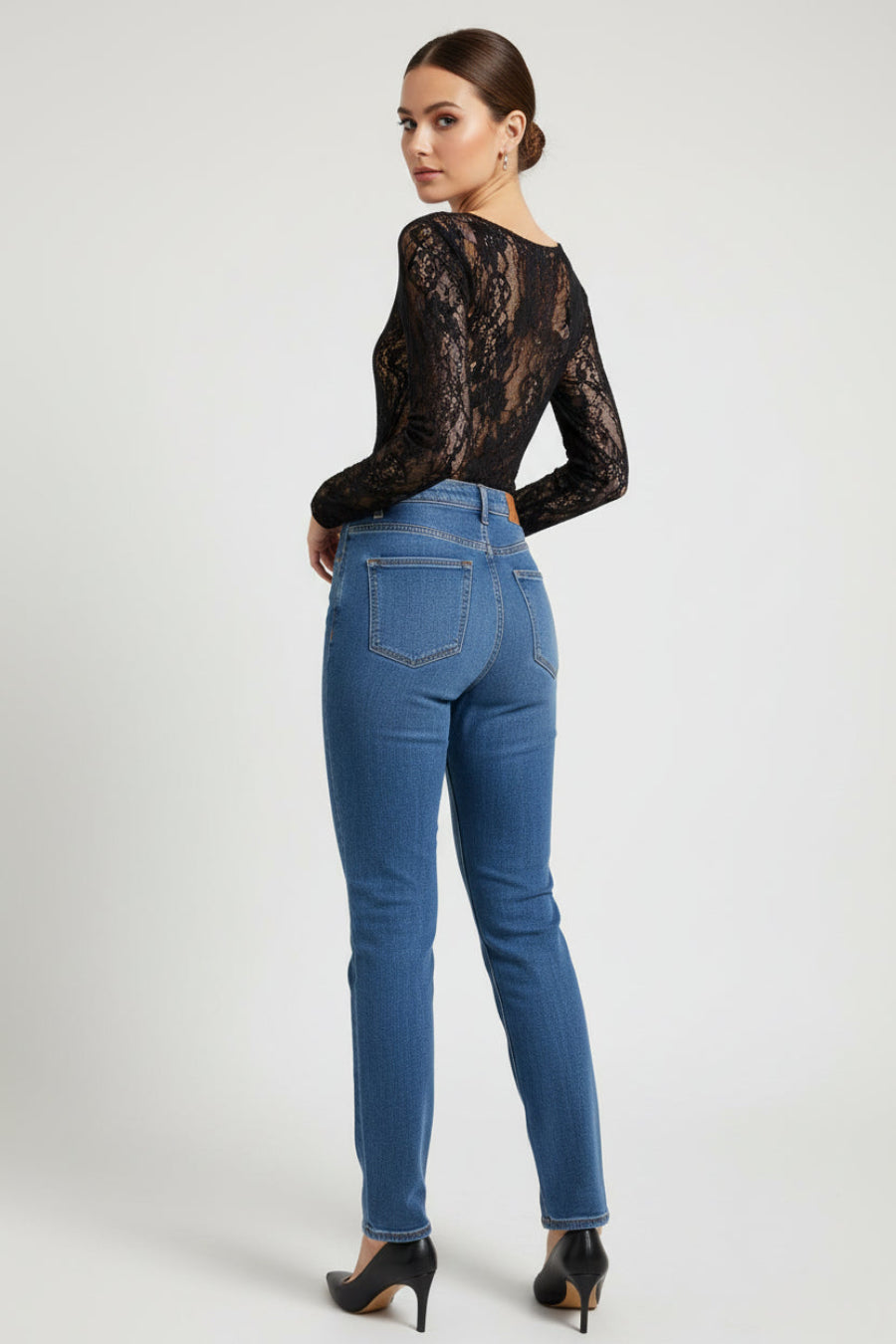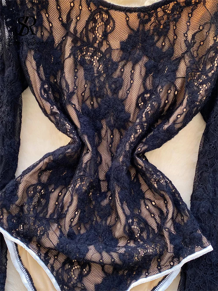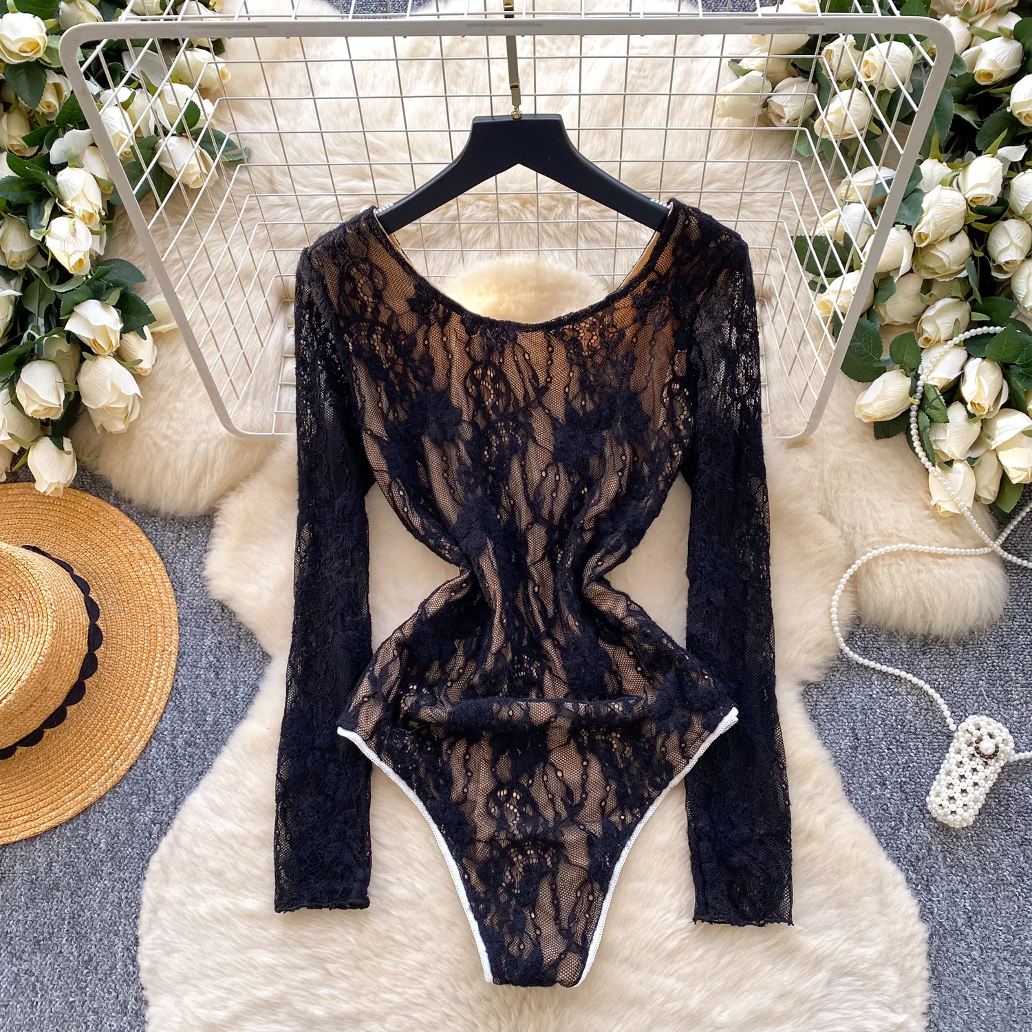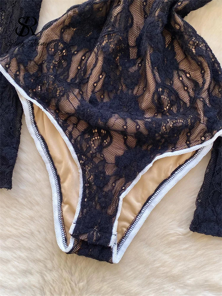 Trend4us Modern Sheer Lace Long-Sleeve Bodysuit
