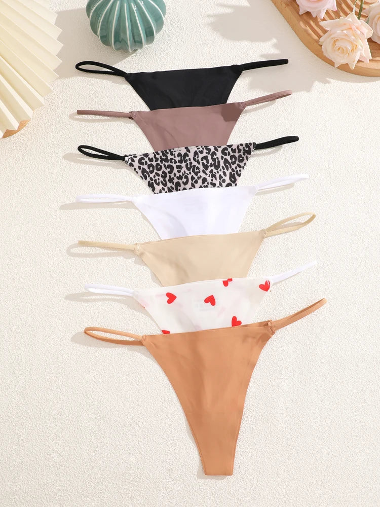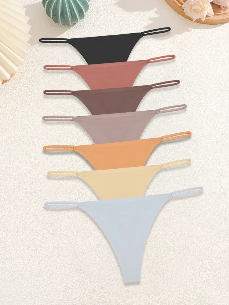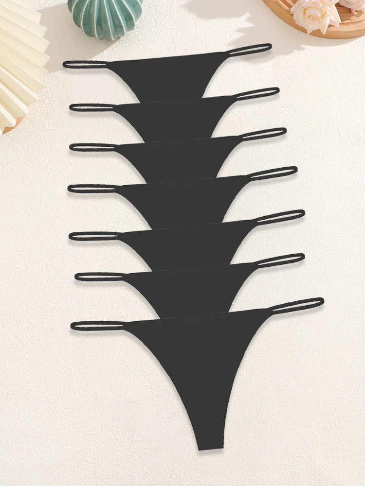 Trend4us Seamless Ice Silk Minimalist Thong Panties – 7-Pack Set