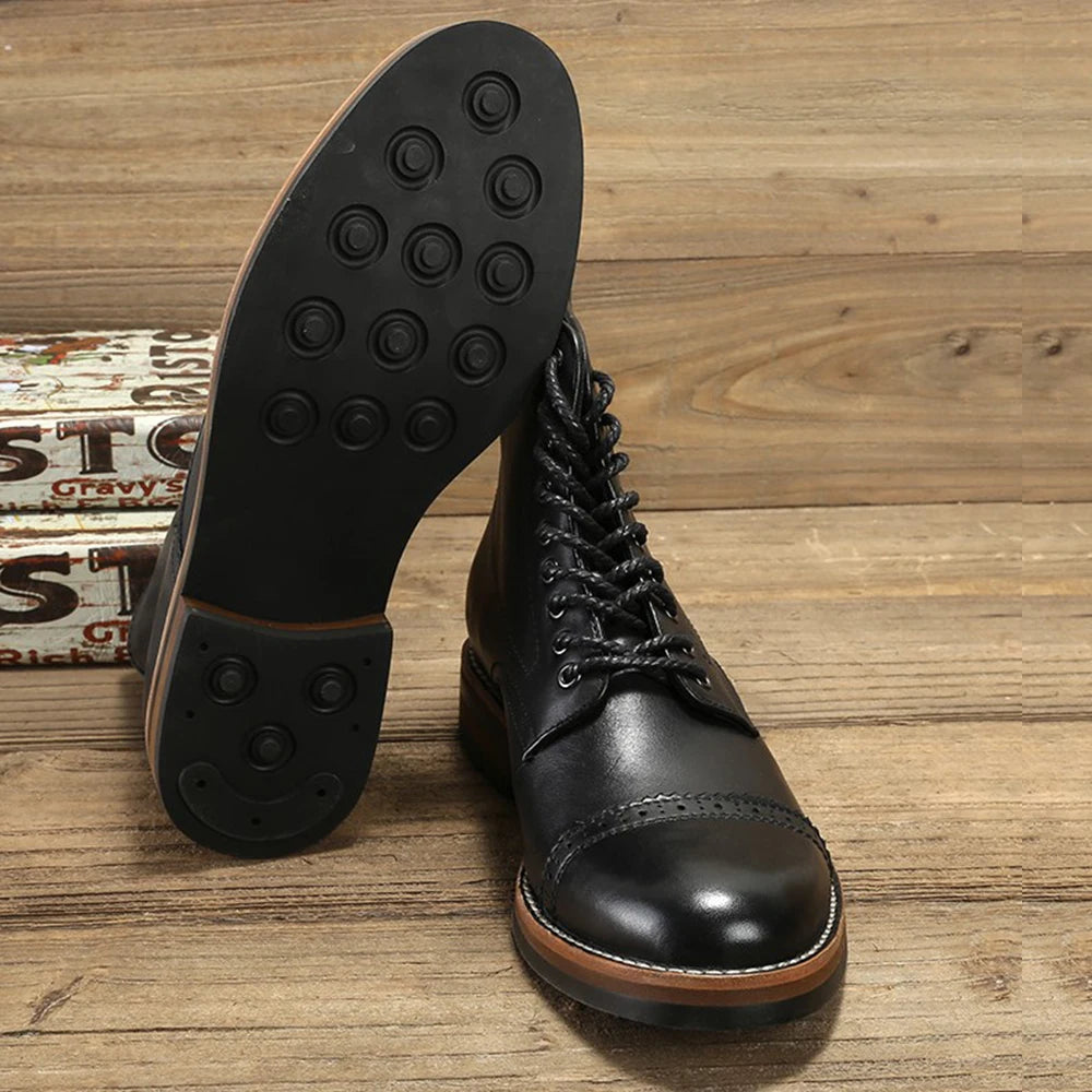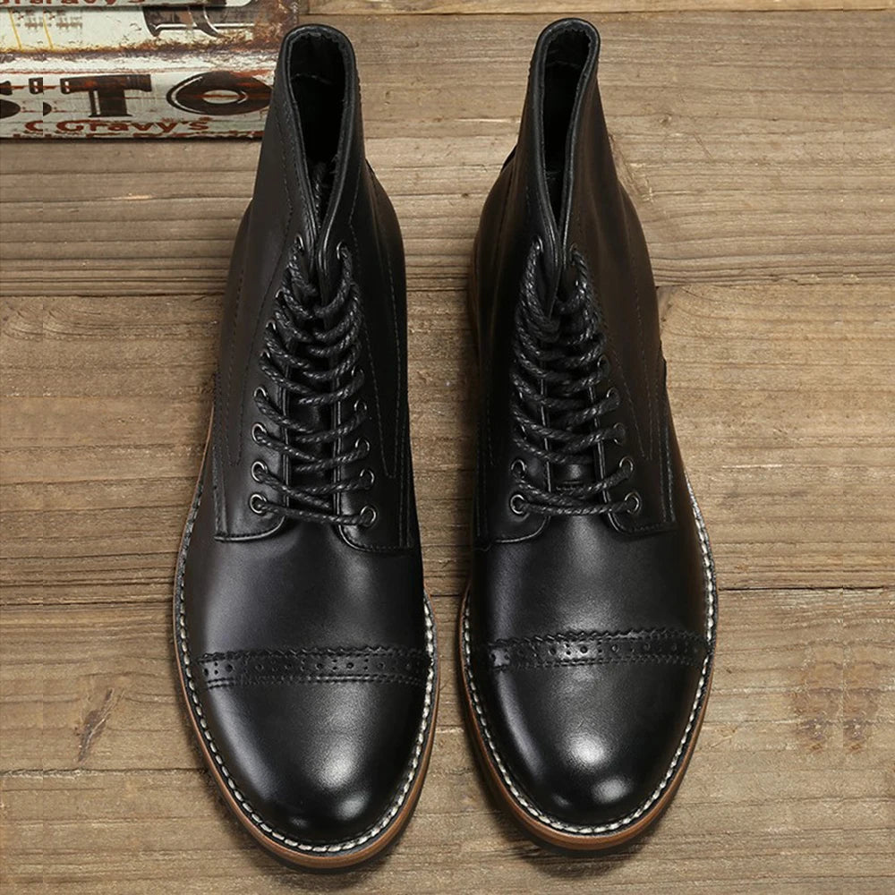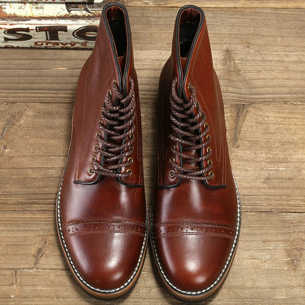 Trend4us Men's Cap-Toe Lace-Up Leather Boots